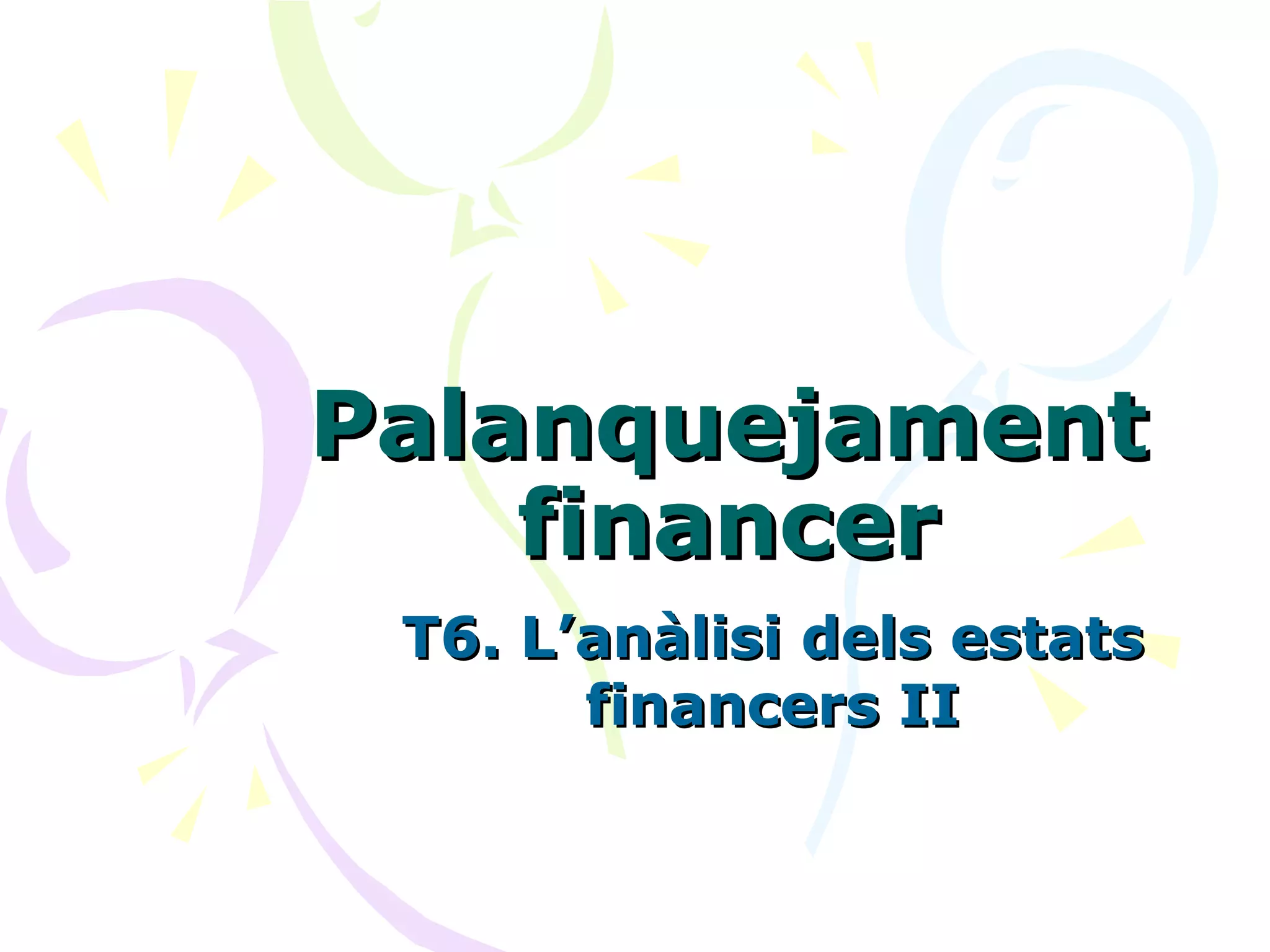Palanquejament financer Elpalanquejament financer relaciona el deute amb les despeses financeres que comporta DEUTE DESPESES FINANCERES
