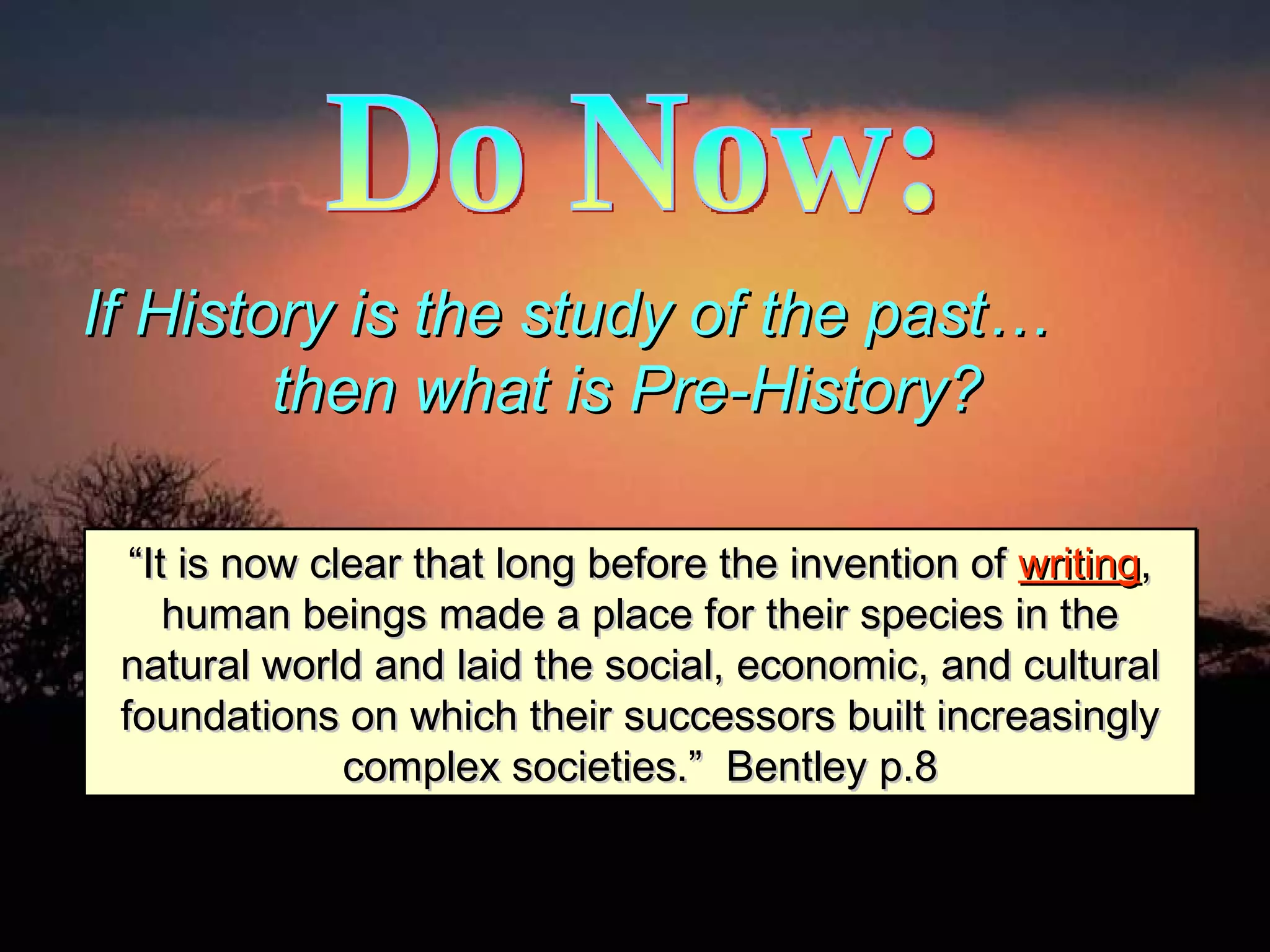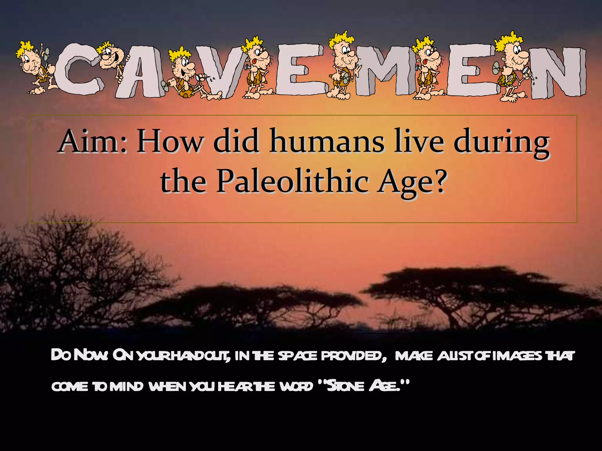 The document summarizes human evolution and life during the Paleolithic Age (Old Stone Age) from around 2.5 million years ago to 10,000 BCE. It describes the major hominin species including Australopithecus, Homo erectus, Neanderthals, and Homo sapiens sapiens. Paleolithic humans lived nomadic lifestyles in small bands, hunting and gathering for food. They used simple stone tools and harnessed fire. Later species such as Cro-Magnons produced cave paintings and sculptures, indicating religious and cultural developments.