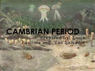 The document summarizes key aspects of the Cambrian and Ordovician periods. During the Cambrian, most major animal phyla first appear in the fossil record during the Cambrian Explosion. The continents were drifting apart and life was dominated by invertebrates like trilobites. The Ordovician saw continued diversification of life with mollusks and arthropods dominating the seas and the first jawed fish evolving, while life on land remained limited. Both periods ended with major extinction events.