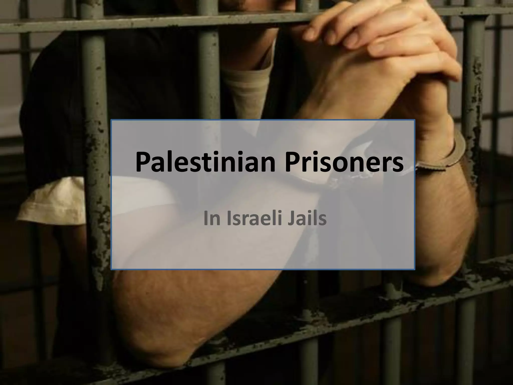 The document outlines statistics about Palestinian prisoners held in Israeli jails, including that there are nearly 5000 Palestinian prisoners, 527 of whom are serving life sentences. It notes the use of solitary confinement, administrative detention, strip inspections, and preventing visits. It also provides details on two Palestinian prisoners, Khader Adnan and Hana Al-Shalabi, and mentions that in 2000, 2000 Palestinian prisoners joined a mass hunger strike to demand their rights.