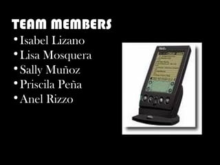 The document discusses the history and features of the original Palm Pilot personal digital assistant (PDA). It was created in 1996 by Palm Computing (then a division of U.S. Robotics) and was one of the first PDAs, featuring handwriting recognition software called Graffiti. The Palm Pilot could be used as a phone, access the web via its browser, send messages, take photos and videos, organize schedules and files, and connect to other devices via Bluetooth. The document provides instructions for using the Palm Pilot and notes that it targeted businessmen and others wanting the latest technology in a portable device.