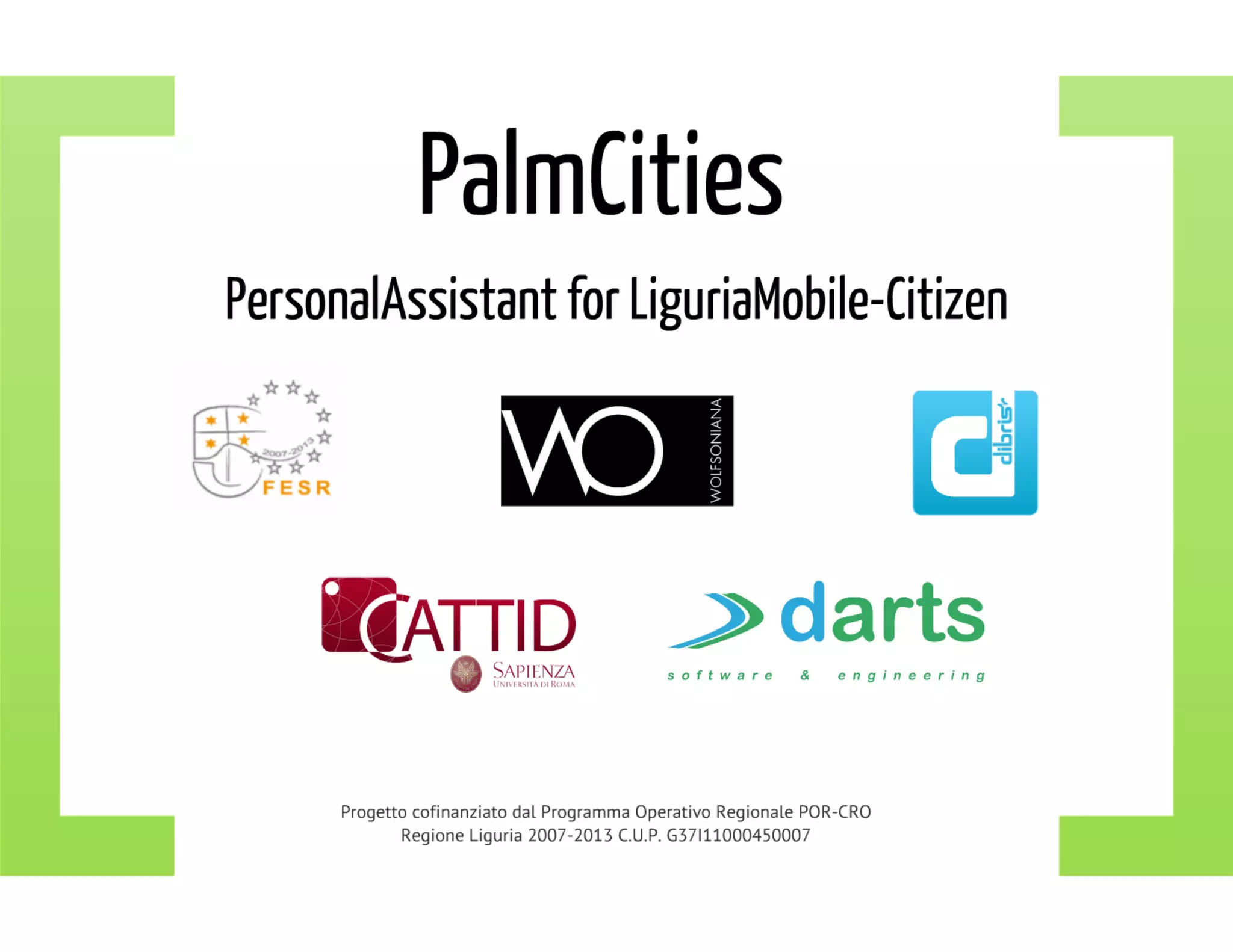 Progettazione di un sistema per distribuzione di contenuti personalizzati su dispositivi mobili integrati nell'ambiente tramite tecnologie contact-less (NFC) nell'ambito del programma 'Palmcities' finanziato dalla regione Liguria.