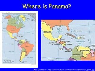 The Panama Canal connects the Atlantic and Pacific Oceans across the Isthmus of Panama and drastically reduced travel times between the oceans. The United States took over construction of the canal from France in 1904 after thousands of French workers had died from disease. Building the canal involved overcoming immense challenges in draining lakes, cutting through mountainous jungle, and constructing giant locks to raise and lower ships. After 10 years of difficult construction under harsh conditions, the Panama Canal opened in 1914.