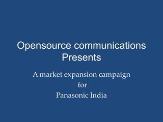 This document discusses a market expansion campaign for Panasonic India. It outlines the key aspects of the Panasonic brand - innovation, social commitment, product excellence, and eco-consciousness. It notes that innovative features must be highlighted to differentiate the customer experience. The proposal recommends amplifying Panasonic's brand visibility, creating engagement events, launching PR and promotional campaigns, and developing local communications content to increase awareness and recall of Panasonic as an innovative brand.