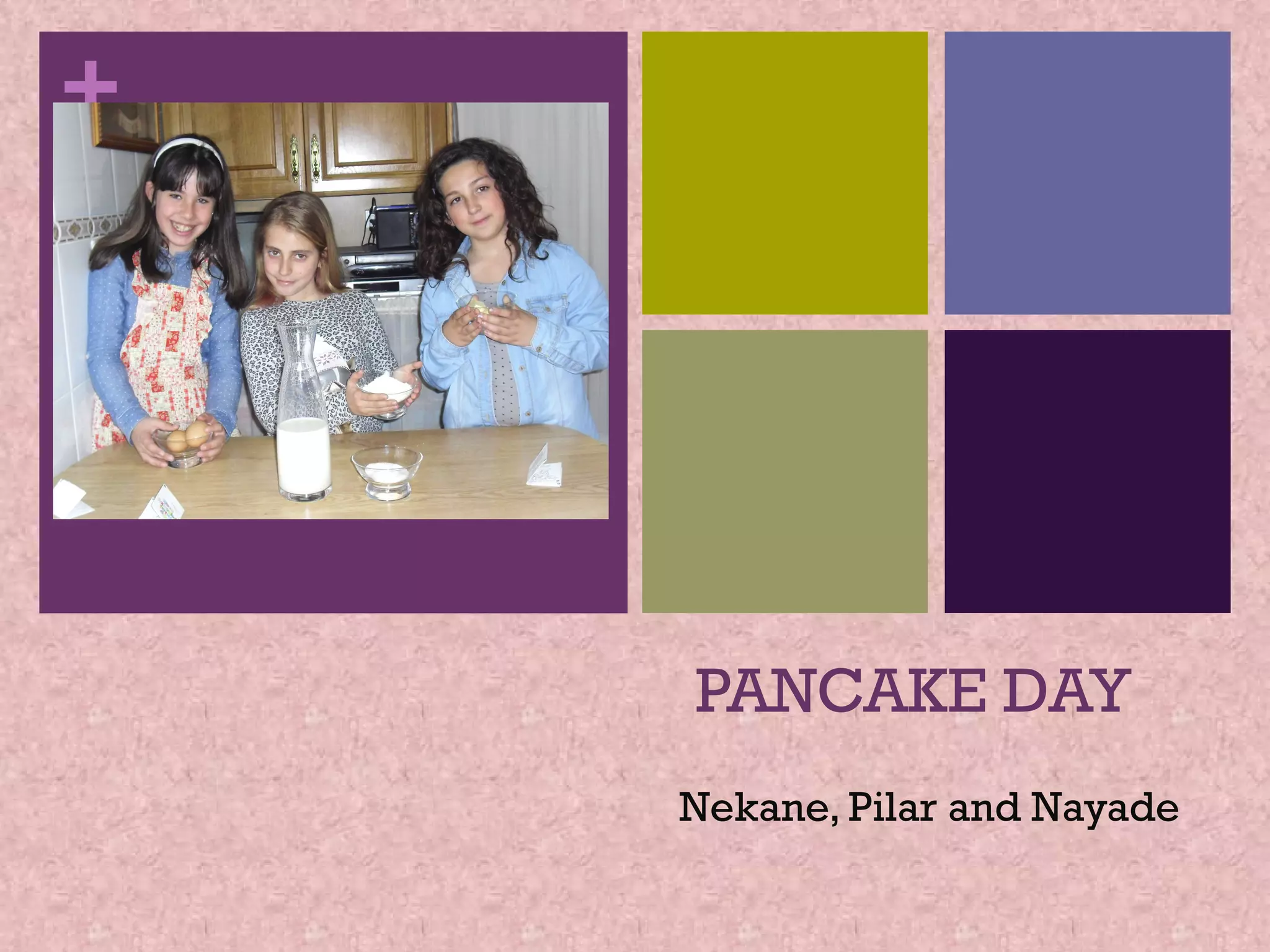 The document provides a recipe for making pancakes with ingredients including eggs, flour, milk and butter. It lists 4 steps for making the pancakes: mixing the dry and wet ingredients, cooking the pancakes in a buttered pan for a minute, tossing the pancakes, and enjoying eating the finished pancakes. Pancake Day is celebrated in Britain where many people traditionally make and eat pancakes.