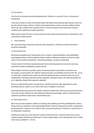 psychosyndromů. Setkat se s ním můžeme také u pracovního pohovoru. Používá se u osob od 6 let a