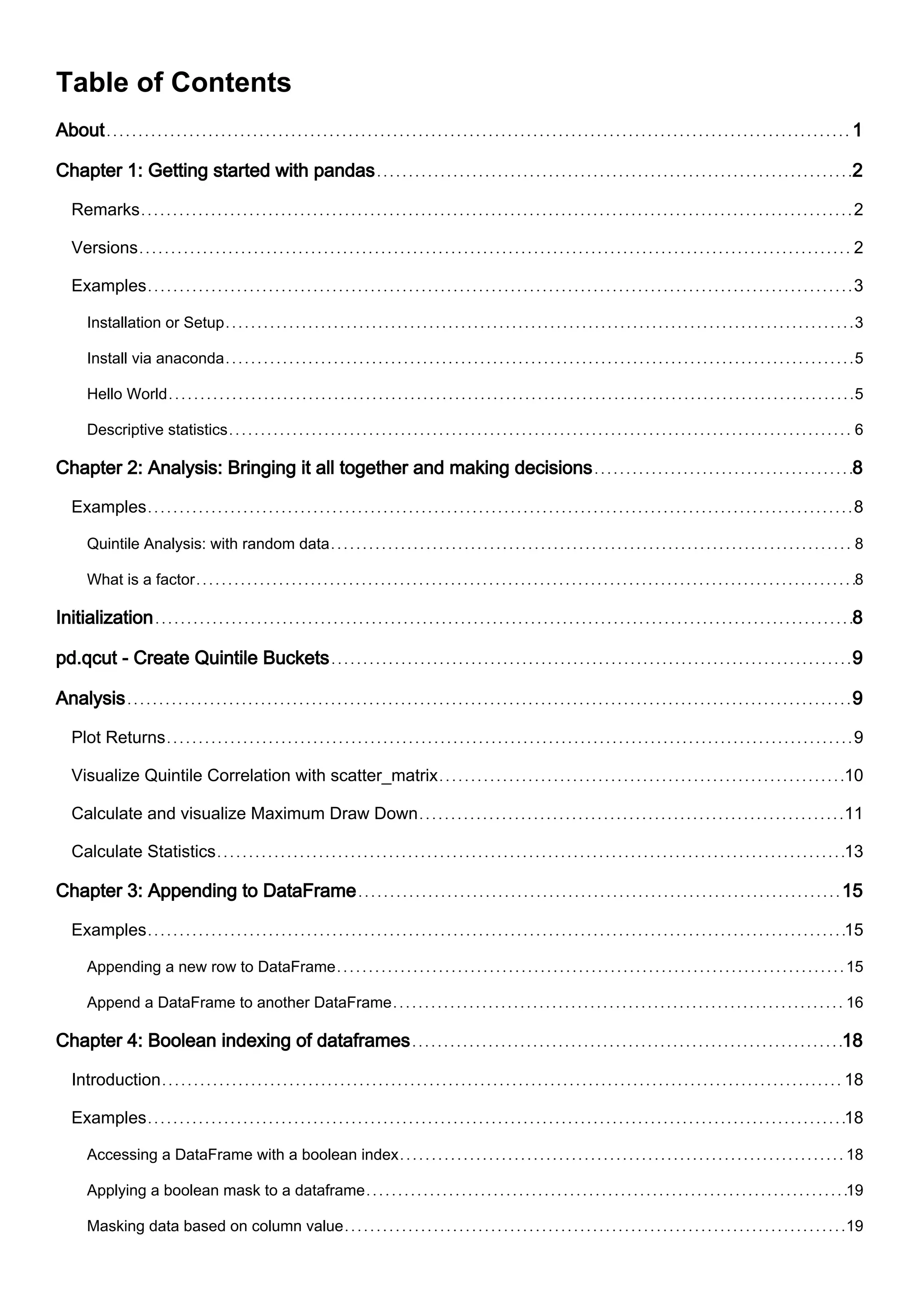 Pandas is a Python library used for working with labeled/relational data and time series. It is easy to install Pandas with Anaconda or Miniconda which provide Python distributions with Pandas and other popular data science packages pre-installed. A simple "Hello World" Pandas program can create a DataFrame and display basic descriptive statistics.