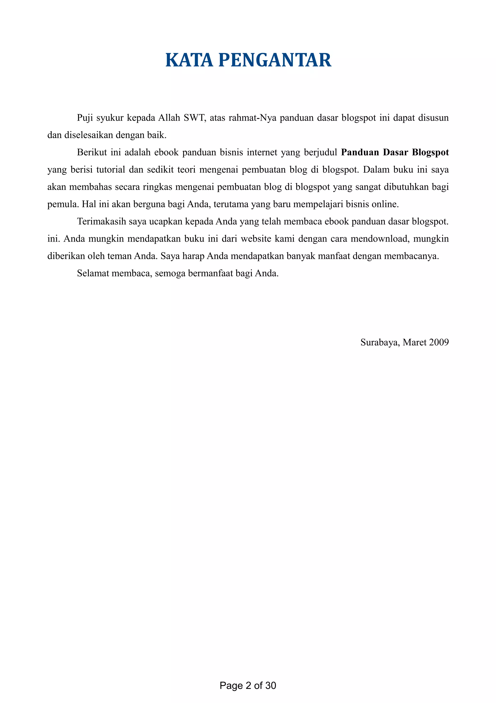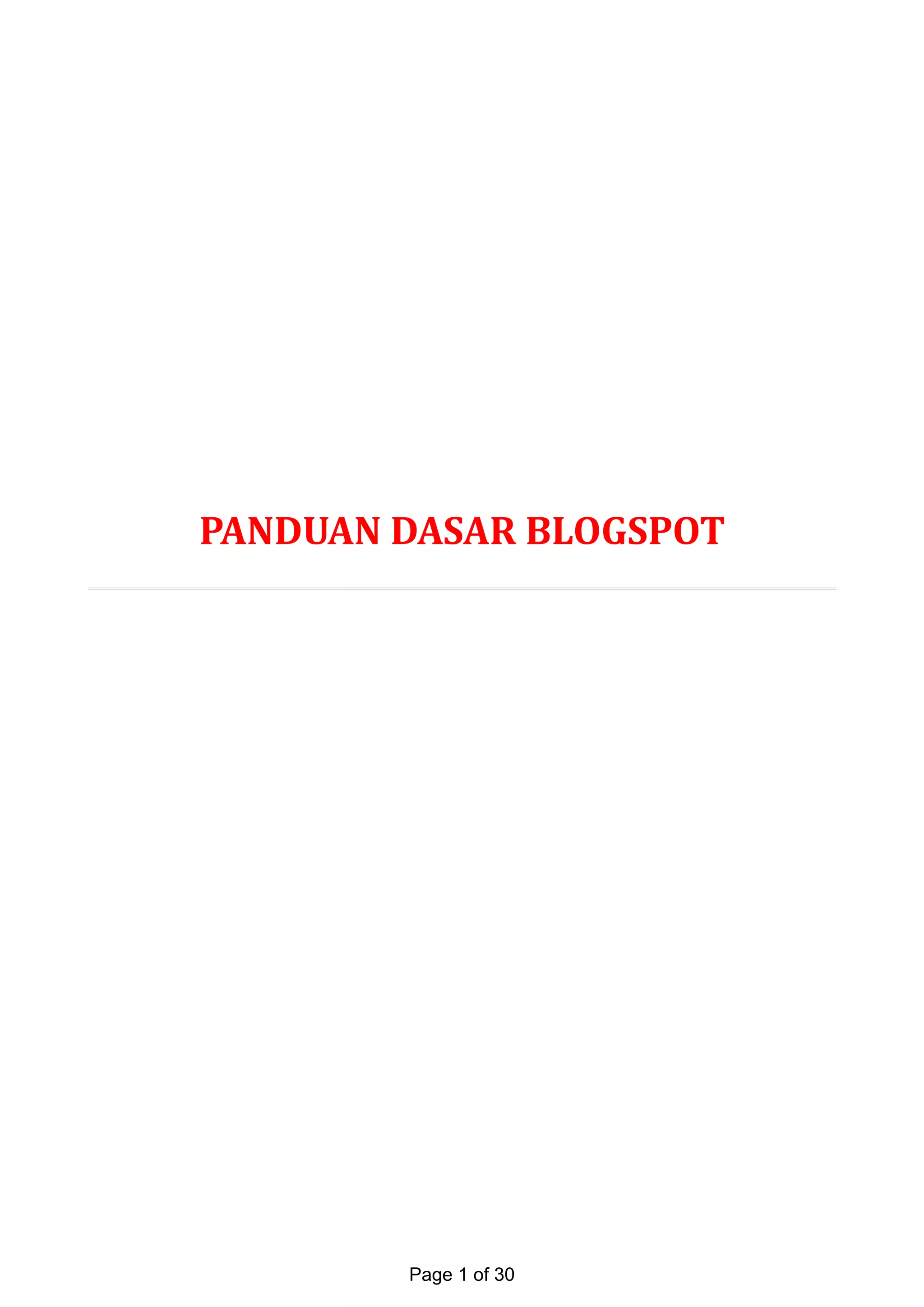 Buku panduan ini memberikan petunjuk lengkap tentang cara membuat dan mengelola blog menggunakan layanan Blogspot (Blogger) dari Google. Pertama, pembaca diarahkan untuk mendaftar akun email Gmail dan akun Blogspot, lalu memilih tema dan menulis artikel blog pertama. Selanjutnya, buku ini menjelaskan cara mengubah tema blog, menambah fitur, dan mempromosikan blog secara online.
