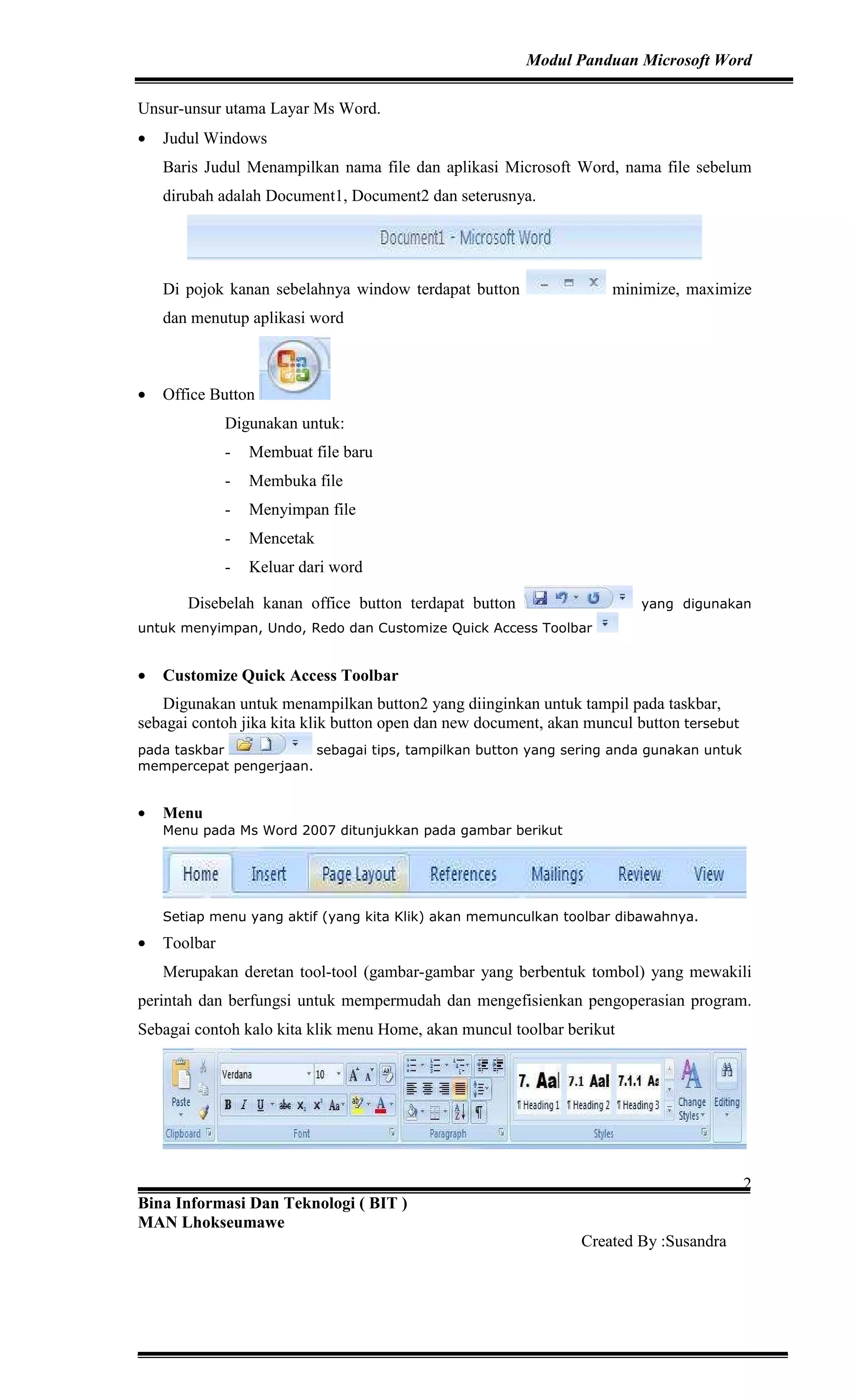 Baris Judul Menampilkan nama file dan aplikasi Microsoft Word, nama file sebelum