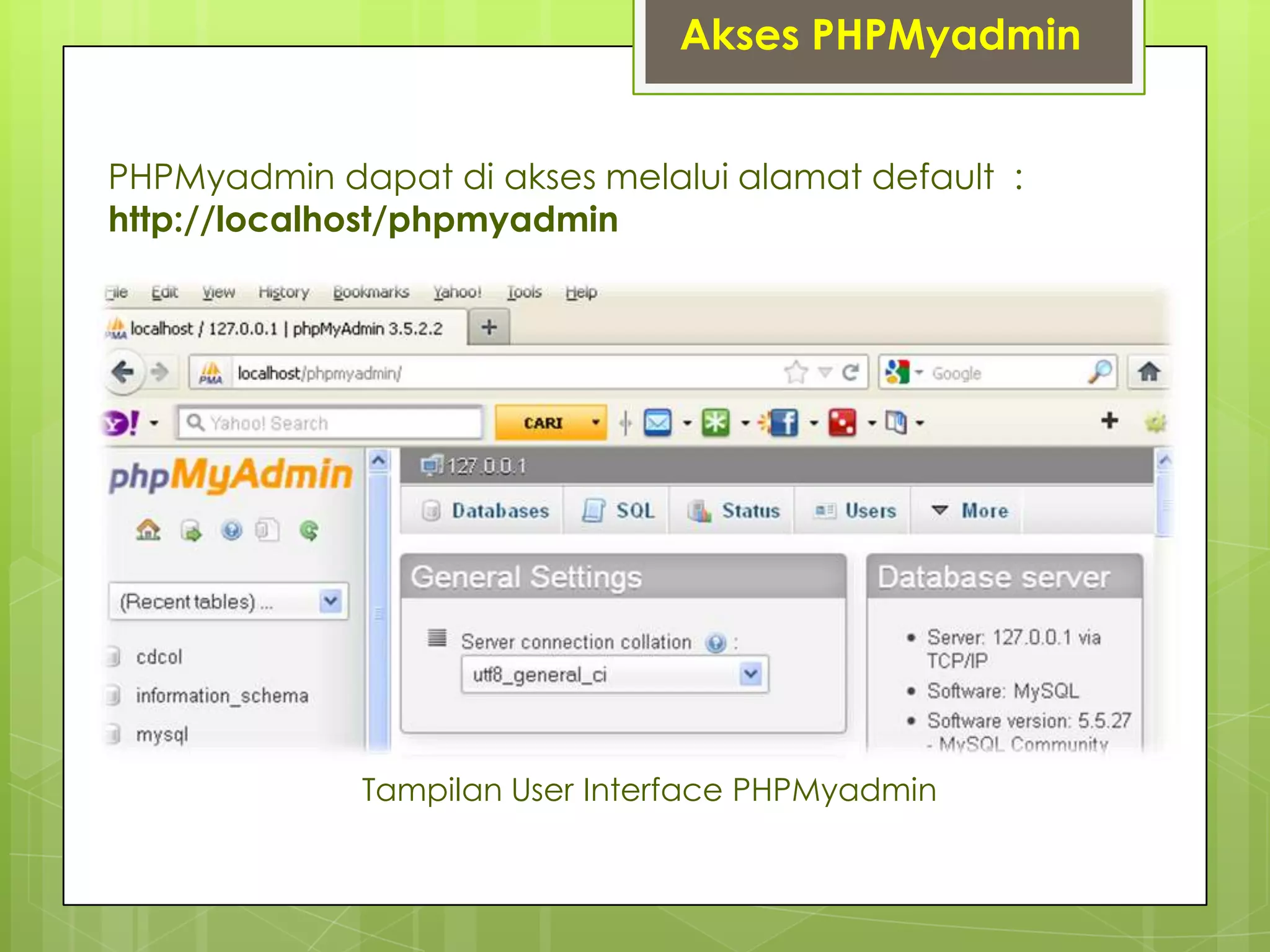 Dokumen ini memberikan panduan lengkap untuk membuat dan mengelola database serta tabel dengan PHPMyAdmin, mulai dari cara mengakses PHPMyAdmin, membuat database dan tabel dengan spesifikasi kolom tertentu, mengisi data ke tabel, mencari dan mengedit data.