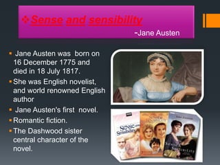 1. The document summarizes the major female characters in Jane Austen's novel Sense and Sensibility, including Elinor and Marianne Dashwood, their mother Mrs. Dashwood, and their friends and relatives.