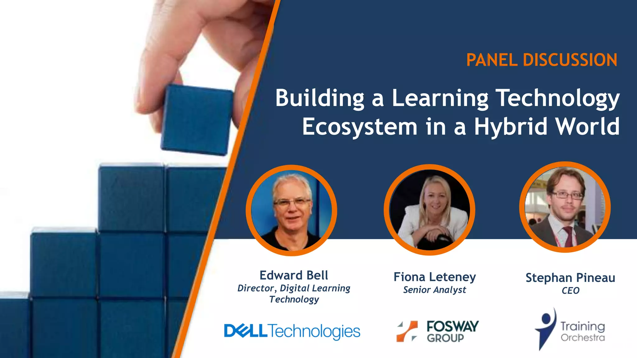 The document highlights a panel discussion featuring experts on building a learning technology ecosystem in a hybrid world, focusing on the impact of COVID-19 on learning and development (L&D) strategies. It notes that 96% of L&D professionals have had to change their strategies due to the pandemic, resulting in a long-term shift in corporate learning practices. Additionally, there is an emphasis on integrating digital learning into corporate collaboration platforms as employees continue to work from home or hybrid settings.