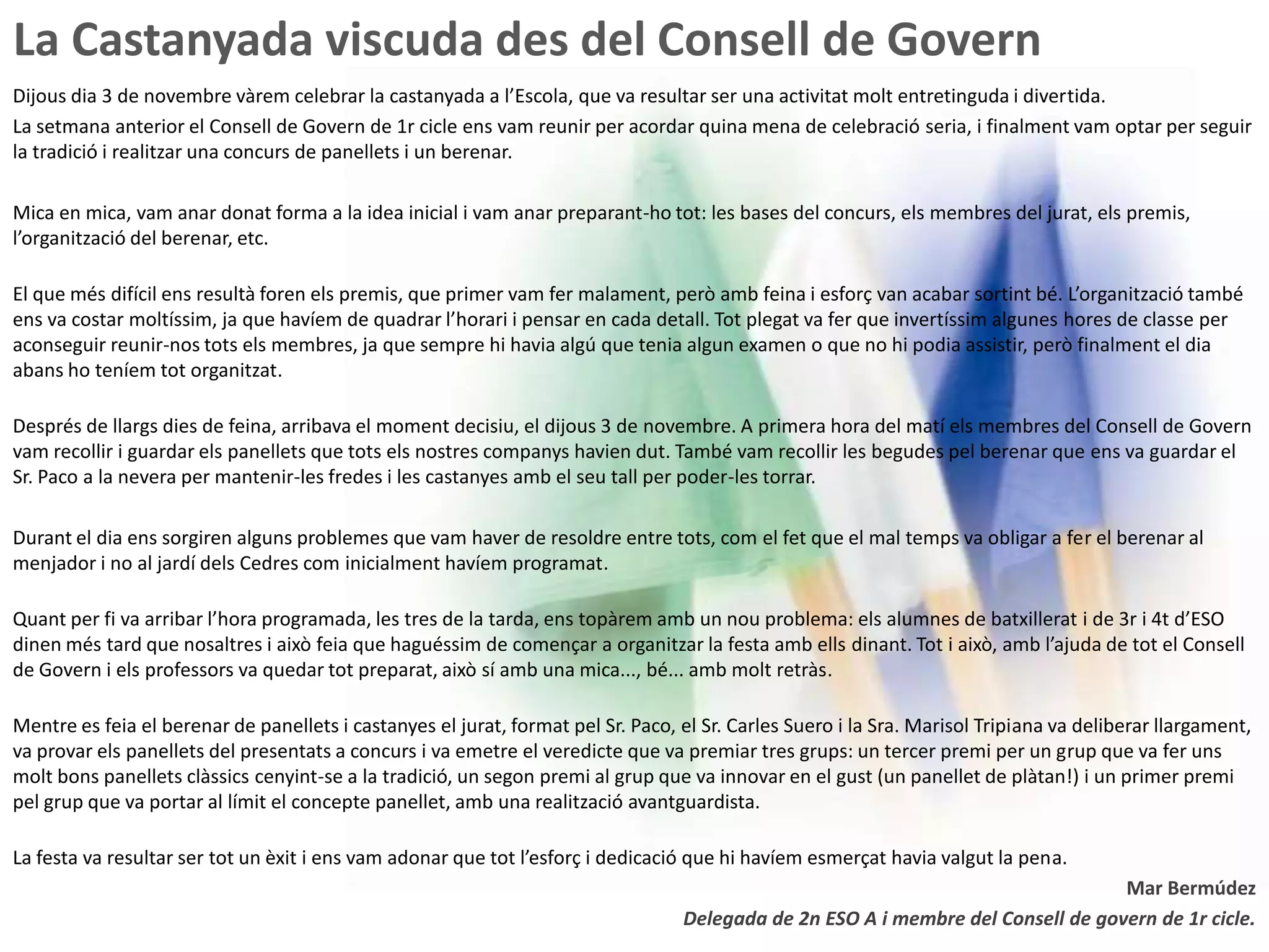 Delegada de 2n ESO A i membre del Consell de govern de 1r cicle.