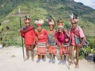 This document provides information about the major ethnic groups in the Philippines. It discusses 7 main ethnic groups: Ilocano, Pangasinense, Kapampangan, Tagalog, Bicolano, Visayan, and Moro/Muslim. It then provides more details about specific ethnic groups located in Luzon, including the Aeta, Mangyan, Ifugao, Kalinga, Ivatans, Ilongot peoples. For each group, it discusses their location, culture, traditions, and way of life. It aims to inform the reader about the diversity of indigenous peoples across the Philippines.
