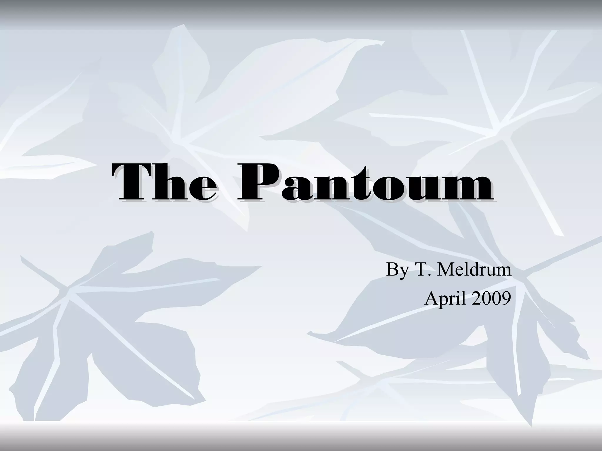 The document discusses the pantoum, an old Malay verse form known for its repetitive structure and dreamlike quality. It includes examples of pantoums, such as 'Desert Dawning' by Anne Johnson and a student-created piece, demonstrating the form's unique rhyming scheme and thematic exploration of memories and emotions. Additionally, it provides guidance on creating pantoums and references related literature.