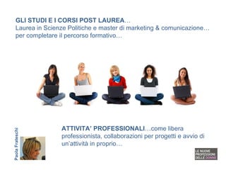 Il documento discute il concetto di personal branding, enfatizzando l'importanza di gestire e comunicare la propria immagine personale per creare opportunità lavorative. Paola Frateschi condivide la sua esperienza e offre consigli su come costruire un brand personale attraverso il web 2.0 e i social media. Inoltre, sottolinea l'importanza di interagire autenticamente e di mantenere una reputazione positiva nel tempo.