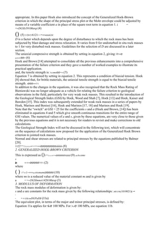 This document presents an updated version of the Hoek-Brown failure criterion for rock masses. It resolves issues with applying the original criterion and sets out a recommended sequence of calculations. Guidelines are provided for determining equivalent Mohr-Coulomb parameters, rock mass strength, the disturbance factor, and the maximum minor principal stress value for relating Hoek-Brown and Mohr-Coulomb criteria. An associated software program called RocLab has also been developed.