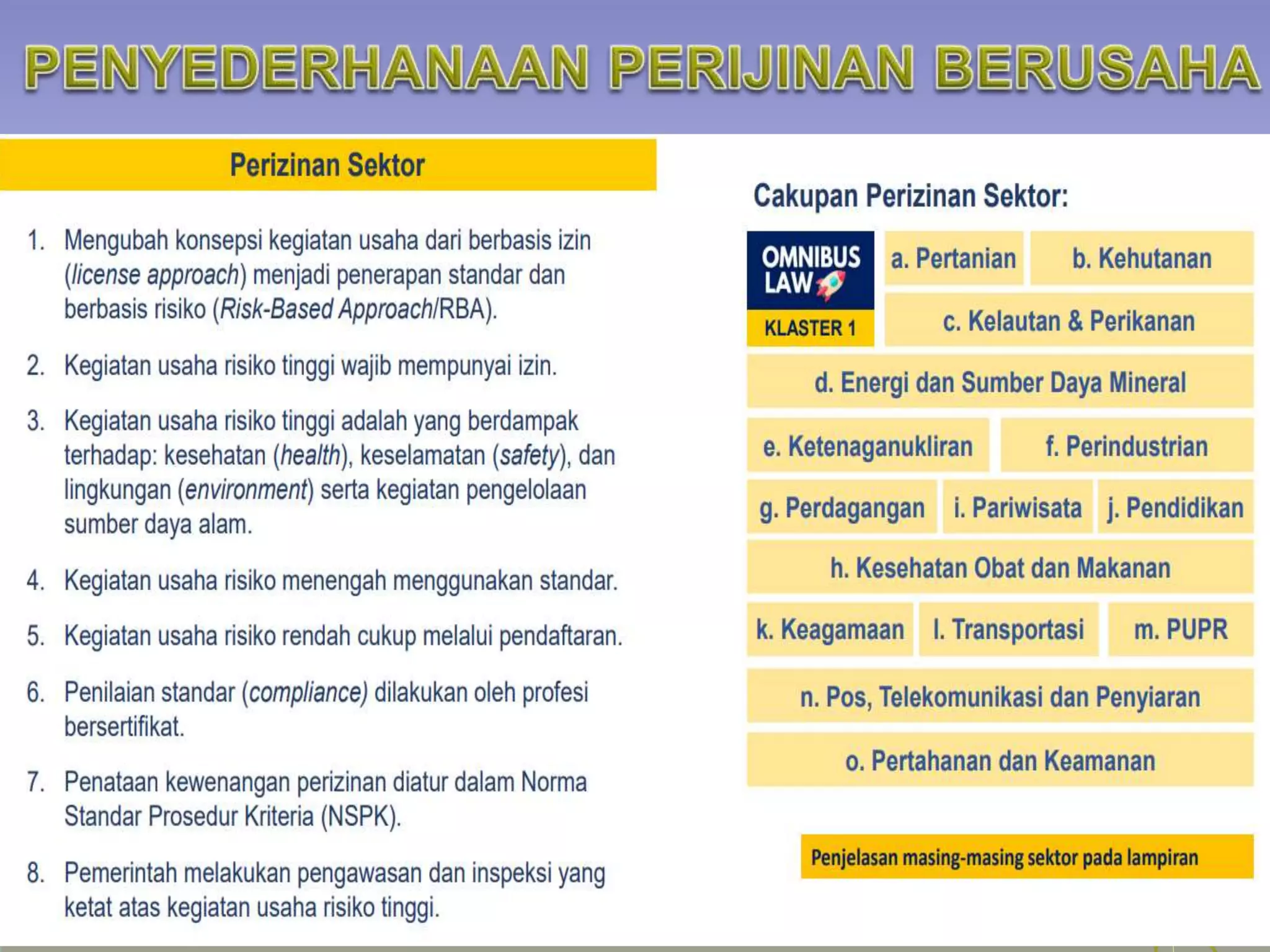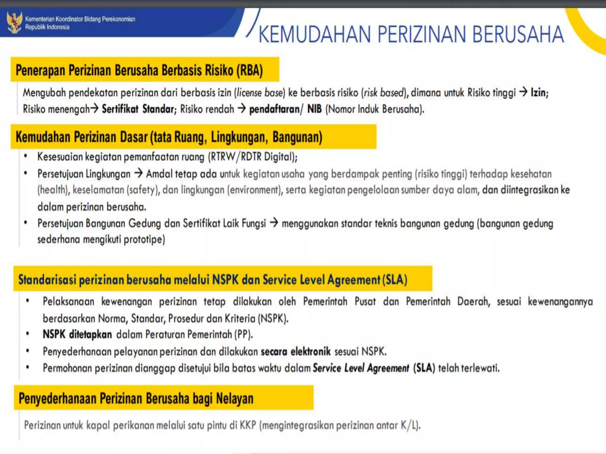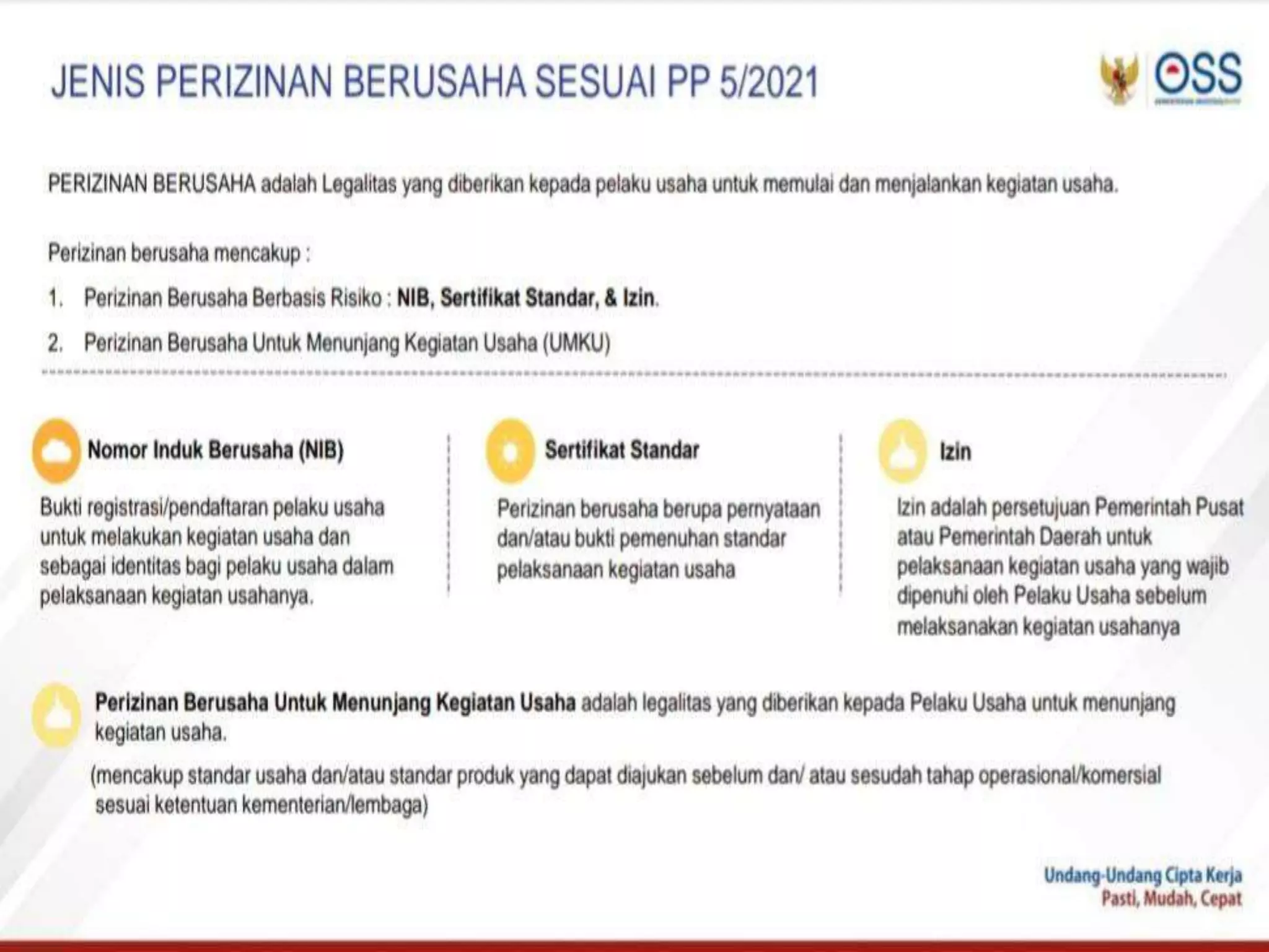 Dokumen ini membahas kemudahan pengurusan perizinan berusaha melalui OSS-RBA, yang disampaikan pada seminar di Universitas PGRI Madiun. Kode Klasifikasi Baku Lapangan Usaha Indonesia (KBLI) 2020 menjadi penting untuk mendaftarkan bidang usaha secara legal di akta perusahaan dan NIB. KBLI berfungsi sebagai standar untuk mengklasifikasikan jenis kegiatan usaha di Indonesia.