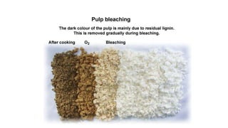 The document covers the historical development and processes involved in paper production, specifically focusing on the kraft process, which is the most efficient method used today. It details the steps from wood preparation to paper making, including pulping, bleaching, and chemical recovery, highlighting the importance of cellulose and lignin in producing quality paper. Additionally, it discusses the advantages and disadvantages of the kraft process, alongside the environmental considerations associated with chemical recovery.