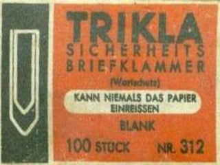 Paper clips have been used to fasten papers since the 13th century, though many early versions used sewing pins. The modern paper clip design was patented in the late 19th century by several inventors including George McGill. A middle school teacher had students collect over 6 million paper clips to represent Jews killed in the Holocaust, resulting in a documentary and book about the project. The common paper clip design was invented by William Middlebrook and is still the best-selling style in the US today under the name "Gem clip".