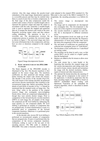 This document summarizes an article that proposes modifications to the JPEG 2000 image compression standard to achieve higher compression ratios while maintaining acceptable error rates. The proposed Adaptive JPEG 2000 technique involves pre-processing images with a transfer function to make them more suitable for compression by JPEG 2000. This is intended to provide higher compression ratios than the original JPEG 2000 standard while keeping root mean square error within allowed thresholds. The document provides background on JPEG 2000 and lossy image compression techniques, describes the proposed pre-processing approach, and indicates it was tested on single-channel images.
