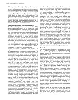 This document discusses several strategies to increase farmer incomes in India through agricultural productivity gains and diversification. It notes that the horticulture sector produces a high value from a small area of land compared to major crops like rice and wheat. There is potential to boost production of high-value crops like fruits, vegetables, milk, fish and edible oils to meet growing demand. Bridging yield gaps through adoption of improved practices from high-yielding states can increase production of crops like lentils, wheat and rice. Diversifying away from staple crops and toward high-value horticulture and animal products in suitable regions can significantly raise farmer incomes. Strengthening research, extension and post-harvest management is needed to realize the productivity