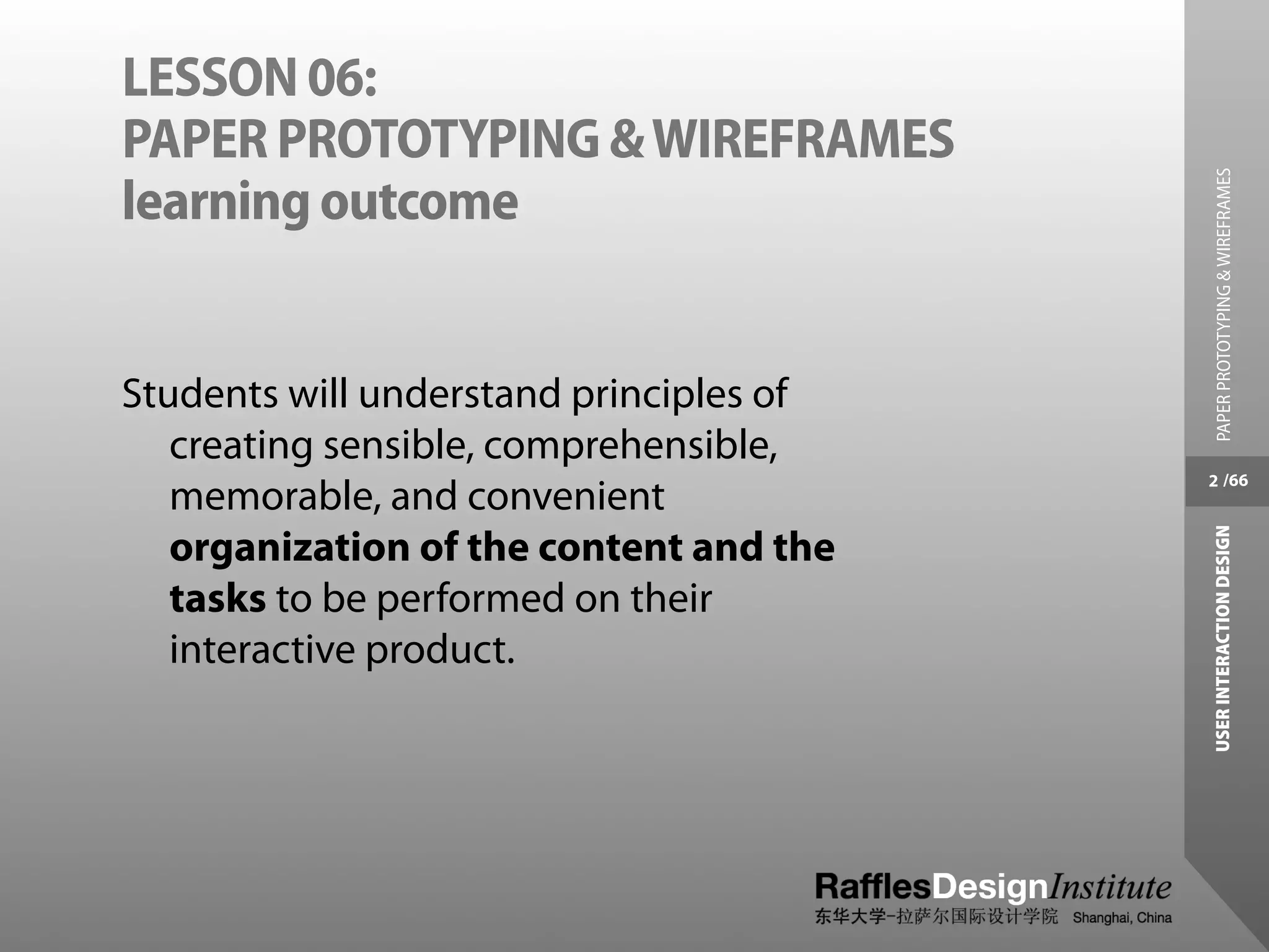 This document outlines a lesson on paper prototyping and wireframes, focusing on user interaction design principles. Students will learn the significance of prototypes in conveying design ideas and the essential techniques for creating effective wireframes that inform layout and content organization. The lesson also covers the advantages and challenges of using wireframes in the design process.