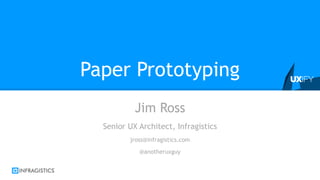 This document outlines a workshop on paper prototyping user interfaces. It will cover creating paper prototypes, conducting usability testing with paper prototypes, and a discussion. Attendees will have time to create their own paper prototype and test it. The document provides details on the benefits of paper prototyping, such as getting early feedback with minimal effort. It also explains how to create various elements of a paper prototype like screens, movable elements, and interactions. Guidelines for testing paper prototypes are also included, such as creating tasks and having different people take on the roles of participant and facilitator/computer.
