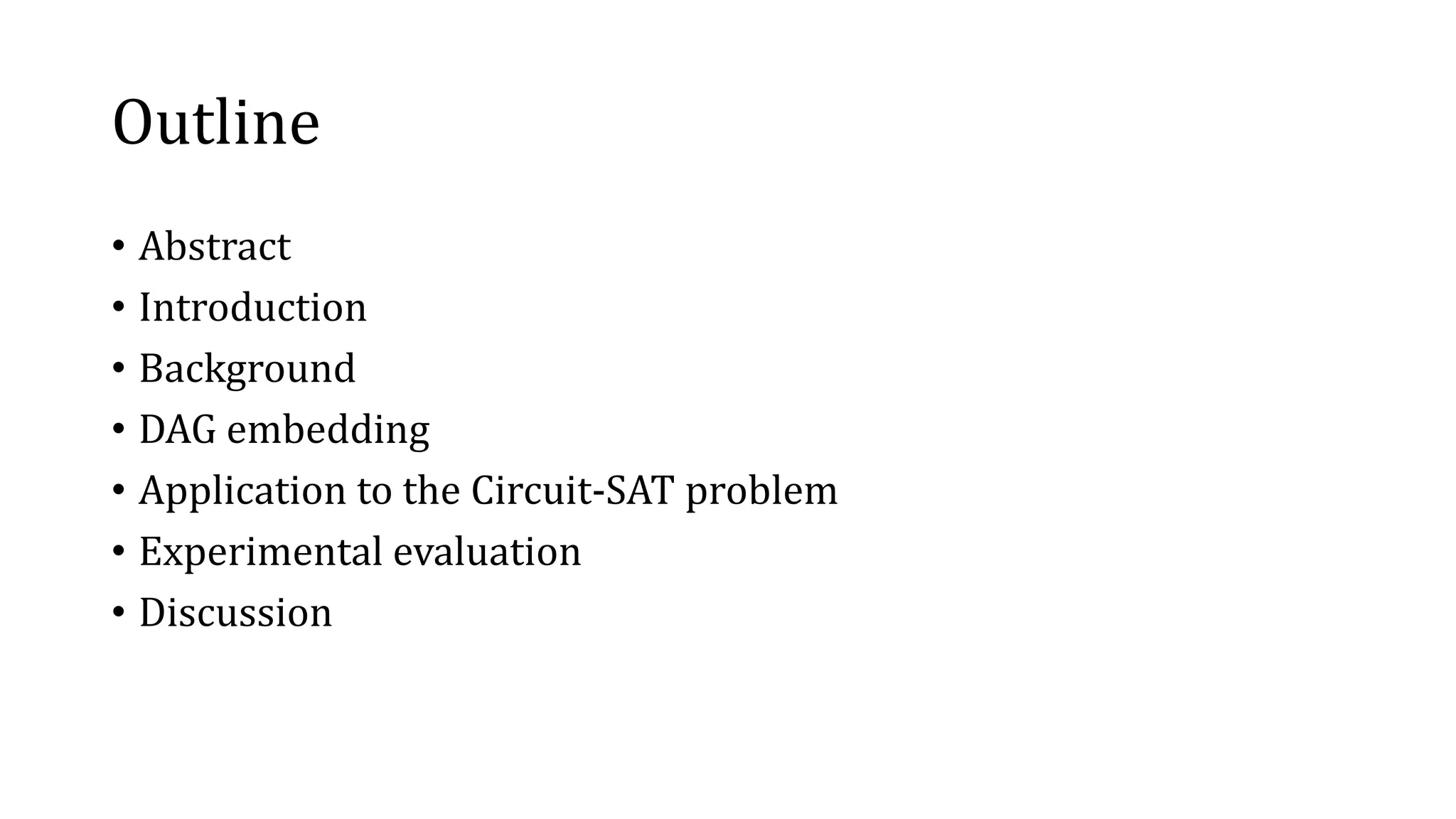 The document presents a neural framework designed to solve the circuit-satisfiability (circuit-sat) problem using a differentiable approach and a directed acyclic graph embedding. It highlights the advantages of this model over the neurosat method, showcasing greater out-of-sample generalization performance while addressing the inherent structures of combinatorial optimization problems. Experimental results demonstrate the model's effectiveness in generating solutions for various Boolean circuits with improved efficiency compared to traditional methods.