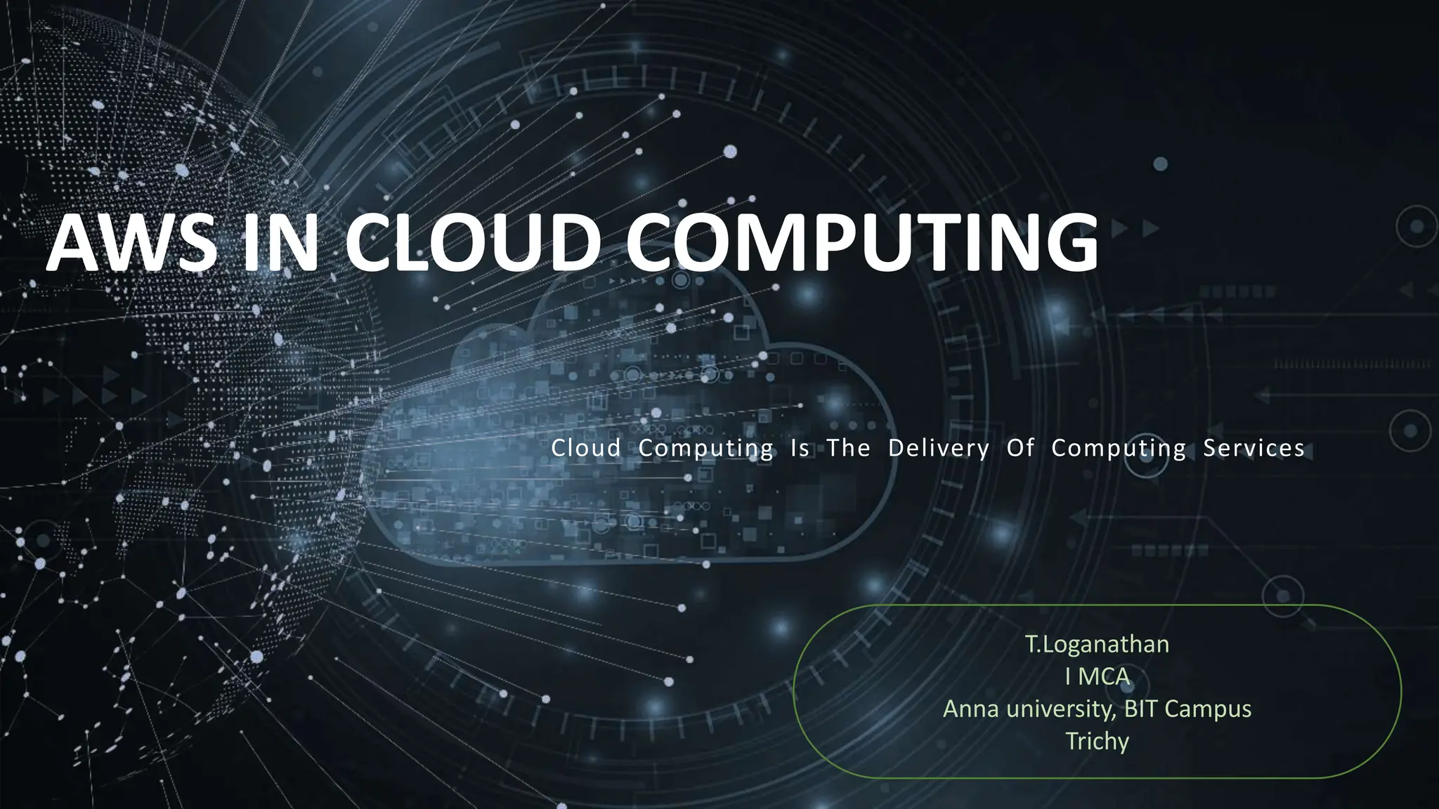 The document discusses Amazon Web Services (AWS) in the context of cloud computing, highlighting its definition, advantages, disadvantages, and historical milestones. AWS provides scalable and cost-effective cloud solutions with various services for developers, including infrastructure, platform, and software as a service. Additionally, it mentions free resources for learning AWS and notes the challenges associated with its use, such as technical support fees and the demand for certified professionals.