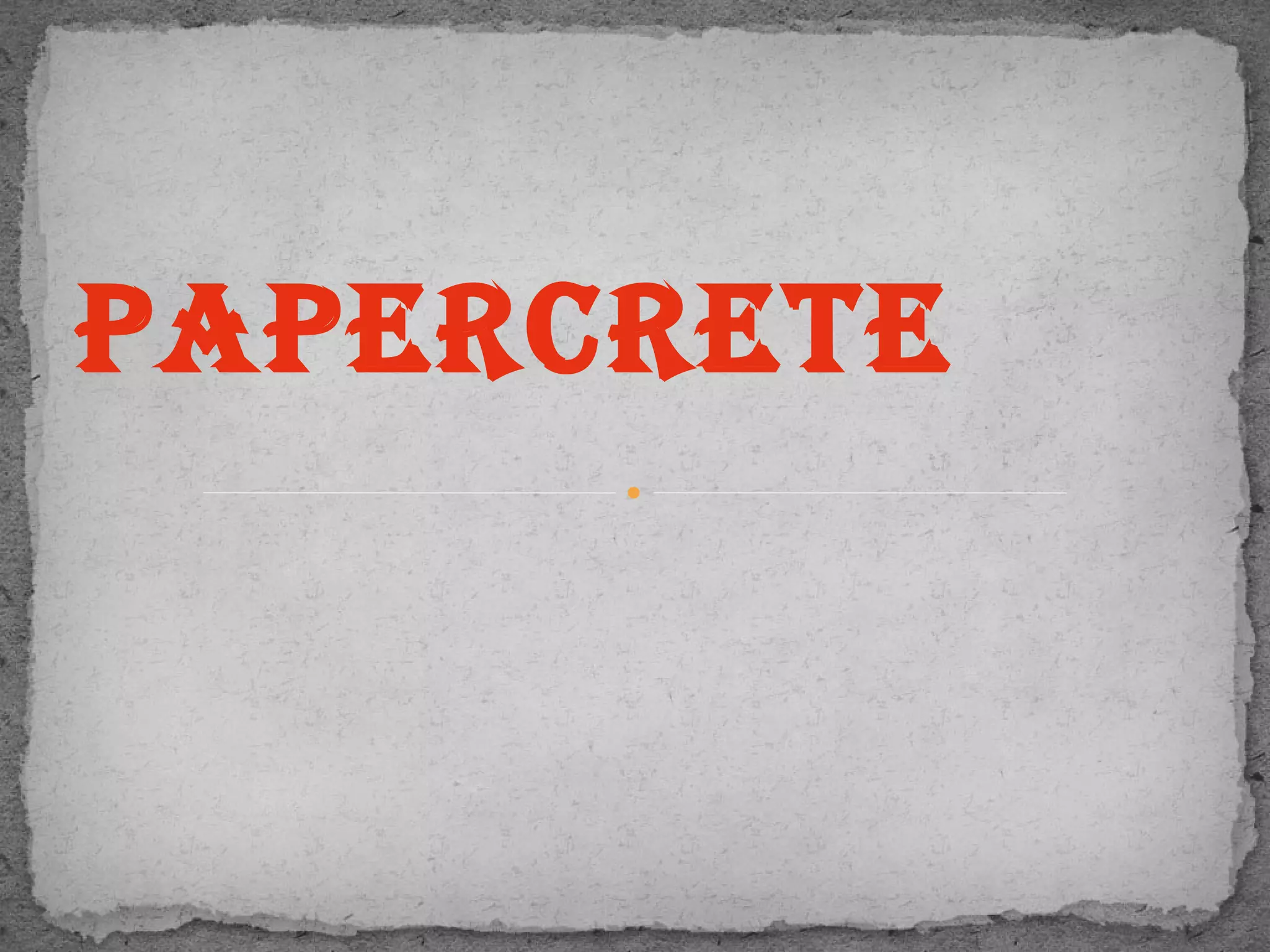 Papercrete is a building material made from recycled paper fiber, Portland cement, and soil. It has low density, good insulation properties, and moderate strength. While papercrete provides environmental and cost benefits, it lacks approval in building codes of most cities, limiting its use in load-bearing structures. More research is still needed to establish standardized production methods and assess long-term durability.