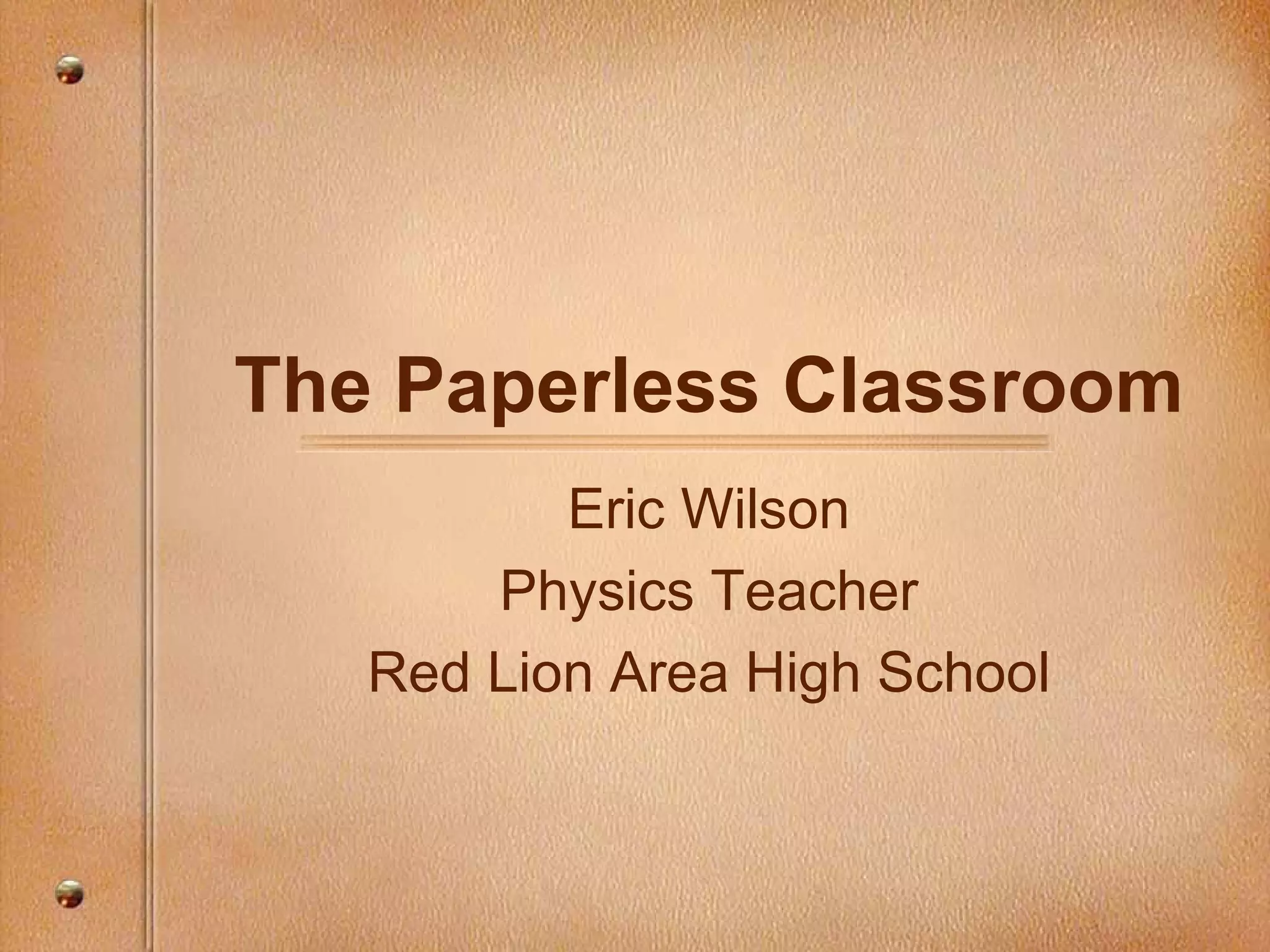 The document outlines ways for a physics teacher to transition to a paperless classroom. It identifies the types of work students currently do on paper like notes, homework, labs, and tests. It then provides examples of how to make this work paperless using various software like word processing apps, PowerPoint, Excel, and online platforms like Blackboard and Moodle. It emphasizes starting small with one paperless activity at a time and getting students familiar with the necessary technology skills through practice.