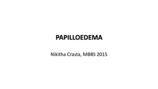 - Papilloedema is edema of the optic disc caused by increased intracranial pressure. It is a non-inflammatory condition where the optic nerve swells within the confined space of the optic nerve sheath.