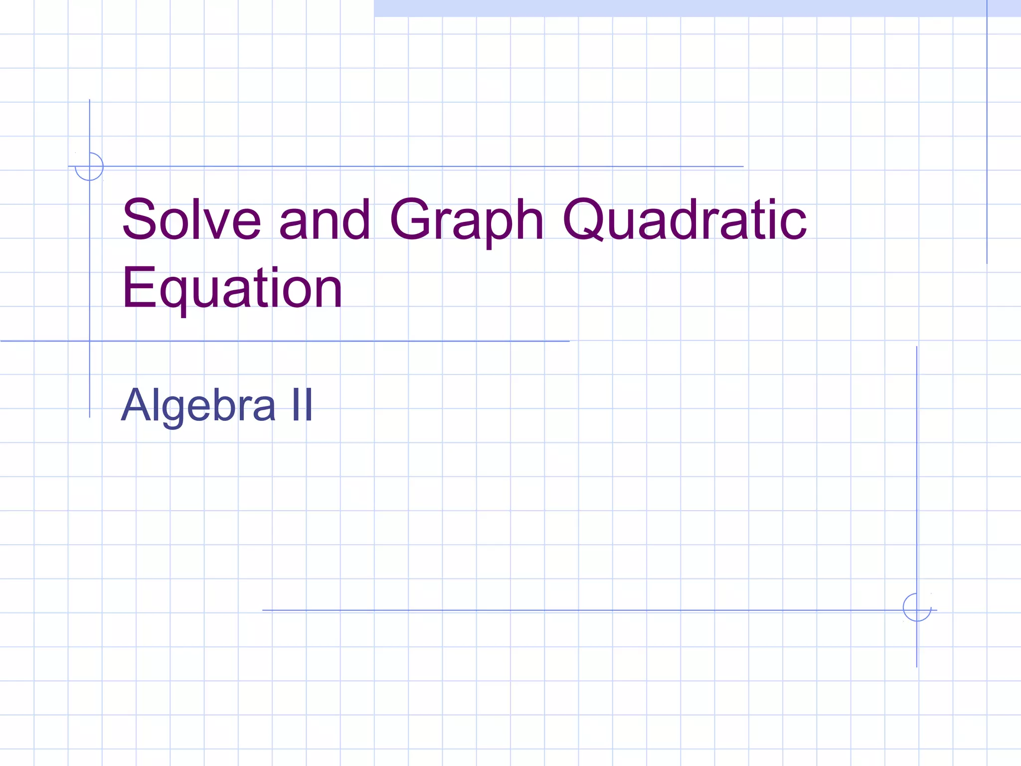 This document discusses how to solve and graph quadratic equations. It explains that a quadratic function has the form y=ax^2 + bx + c, and that the graph of a quadratic function is a parabola. It provides steps to find the x-intercepts, y-intercept, vertex, and determine if a parabola opens up or down by analyzing the leading coefficient a. Examples are given to demonstrate how to apply these steps to solve and graph specific quadratic equations.