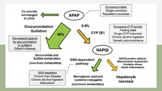 2) It describes paracetamol's absorption in the small intestine, metabolism primarily in the liver, and excretion mainly through the kidneys. Toxicity can occur when a toxic metabolite, NAPQI, is formed and not detoxified.