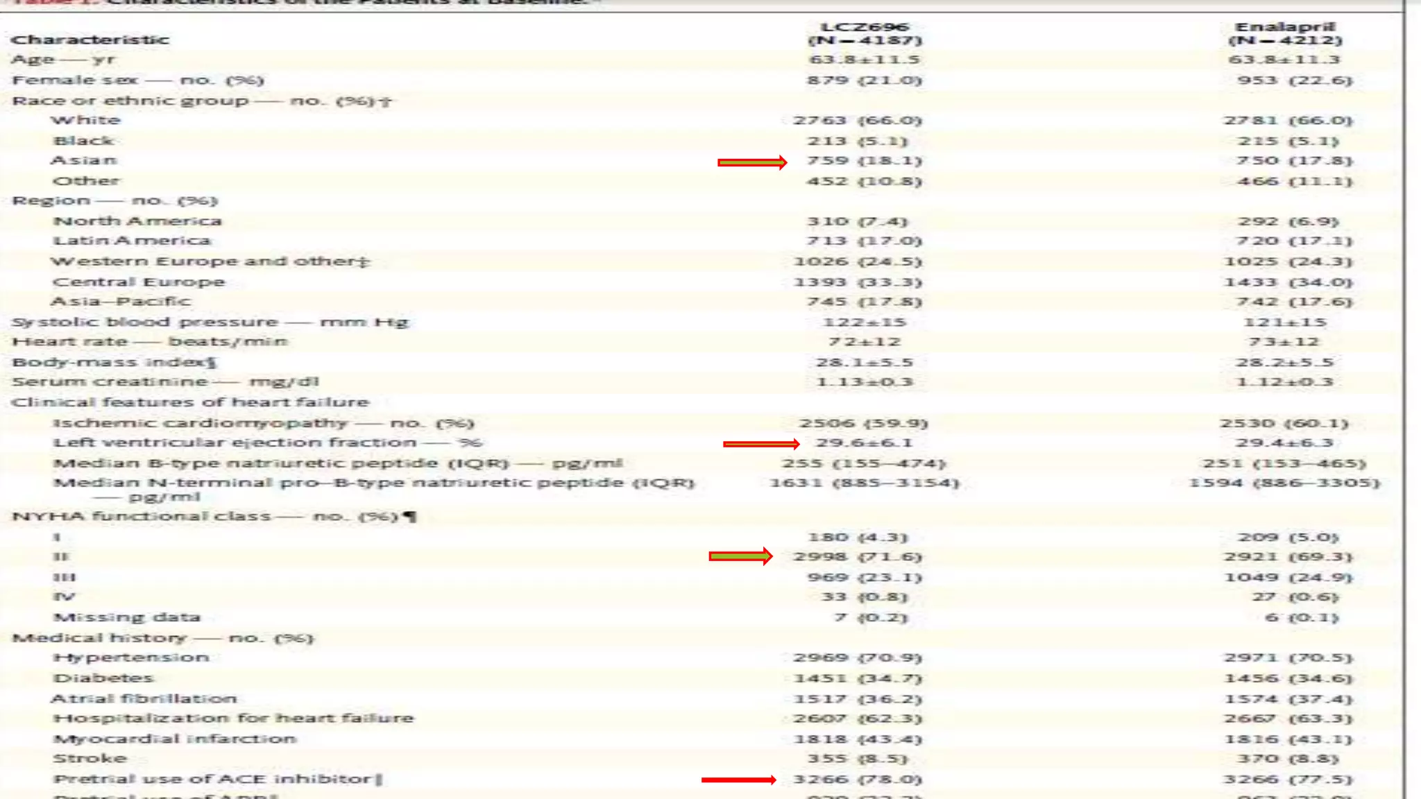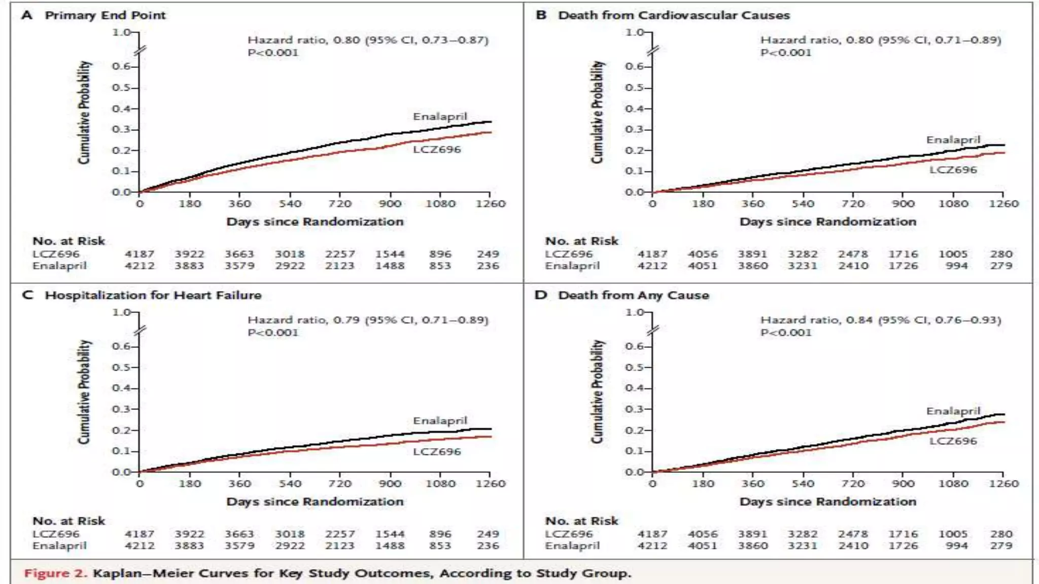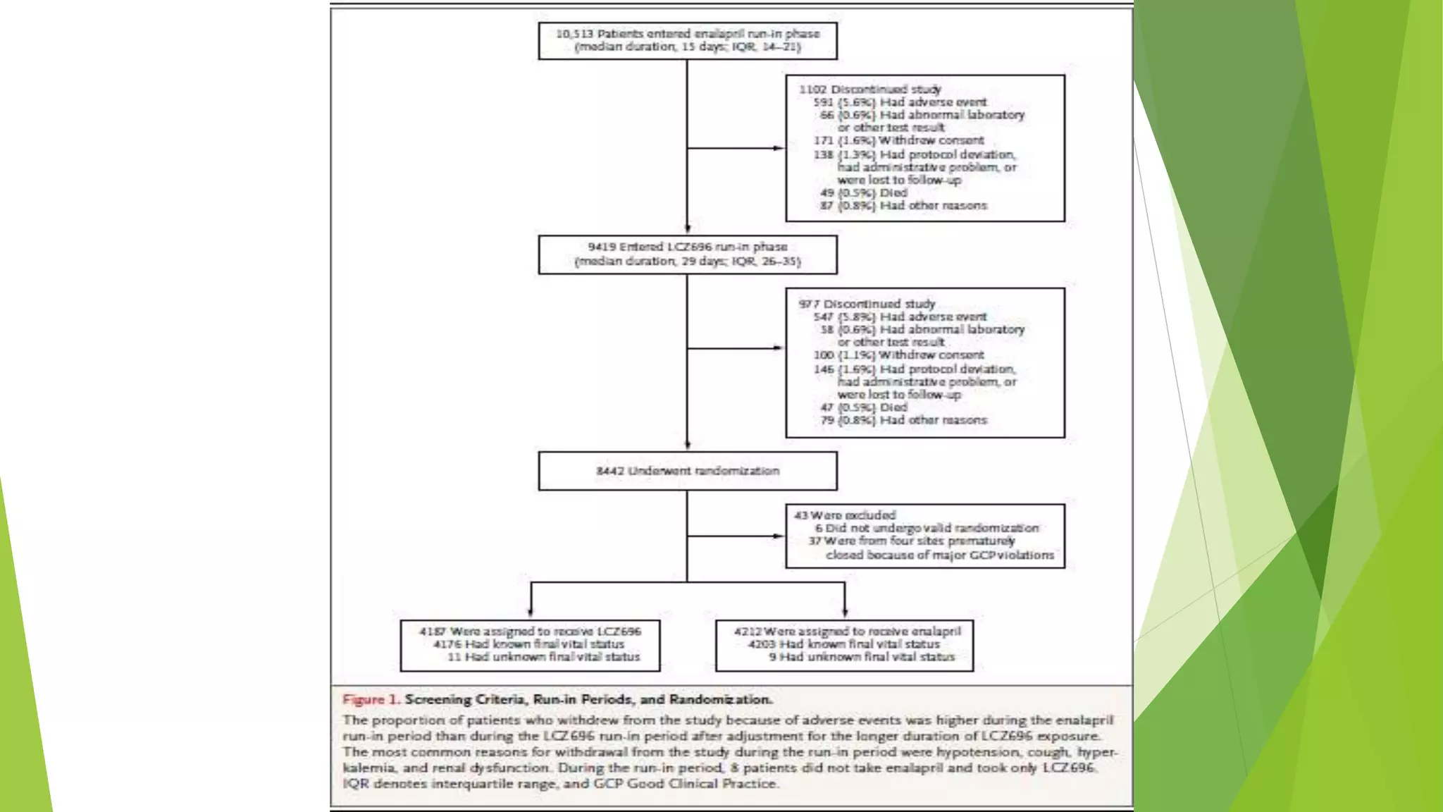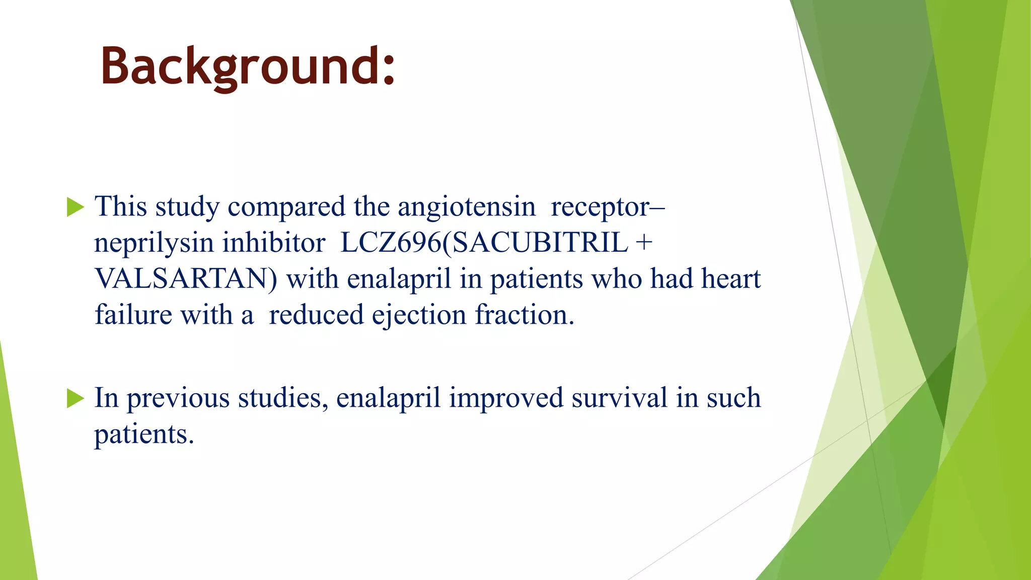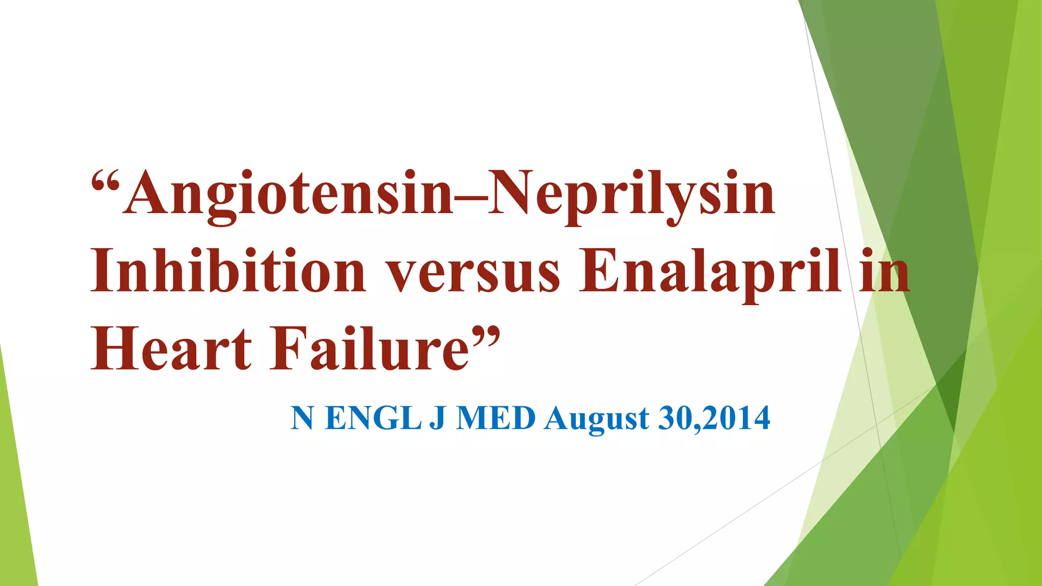 This randomized controlled trial compared the angiotensin receptor-neprilysin inhibitor LCZ696 to enalapril in over 8,400 patients with heart failure and reduced ejection fraction. It found that LCZ696 reduced the primary composite outcome of cardiovascular death or heart failure hospitalization by 20% compared to enalapril, as well as reducing overall mortality, cardiovascular mortality, heart failure hospitalizations, and improving symptoms. LCZ696 resulted in more hypotension and angioedema but less renal impairment, hyperkalemia, and coughing than enalapril.