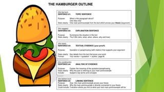 The document explains the structure and characteristics of a paragraph, emphasizing that it consists of related sentences focused on a main idea. It discusses the components of a good paragraph, including unity, coherence, and variety in language, as well as different types of paragraphs such as descriptive, narrative, informative, and persuasive. Additionally, it provides an activity to rearrange sentences and prompts for writing a paragraph on the role of English as a global language.