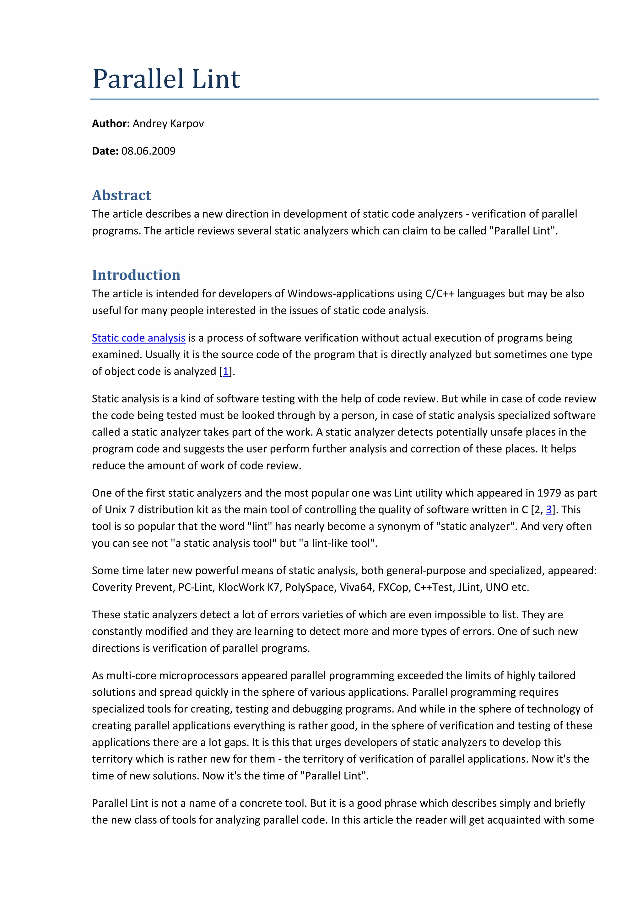 programs. The article reviews several static analyzers which can claim to be called "Parallel Lint".