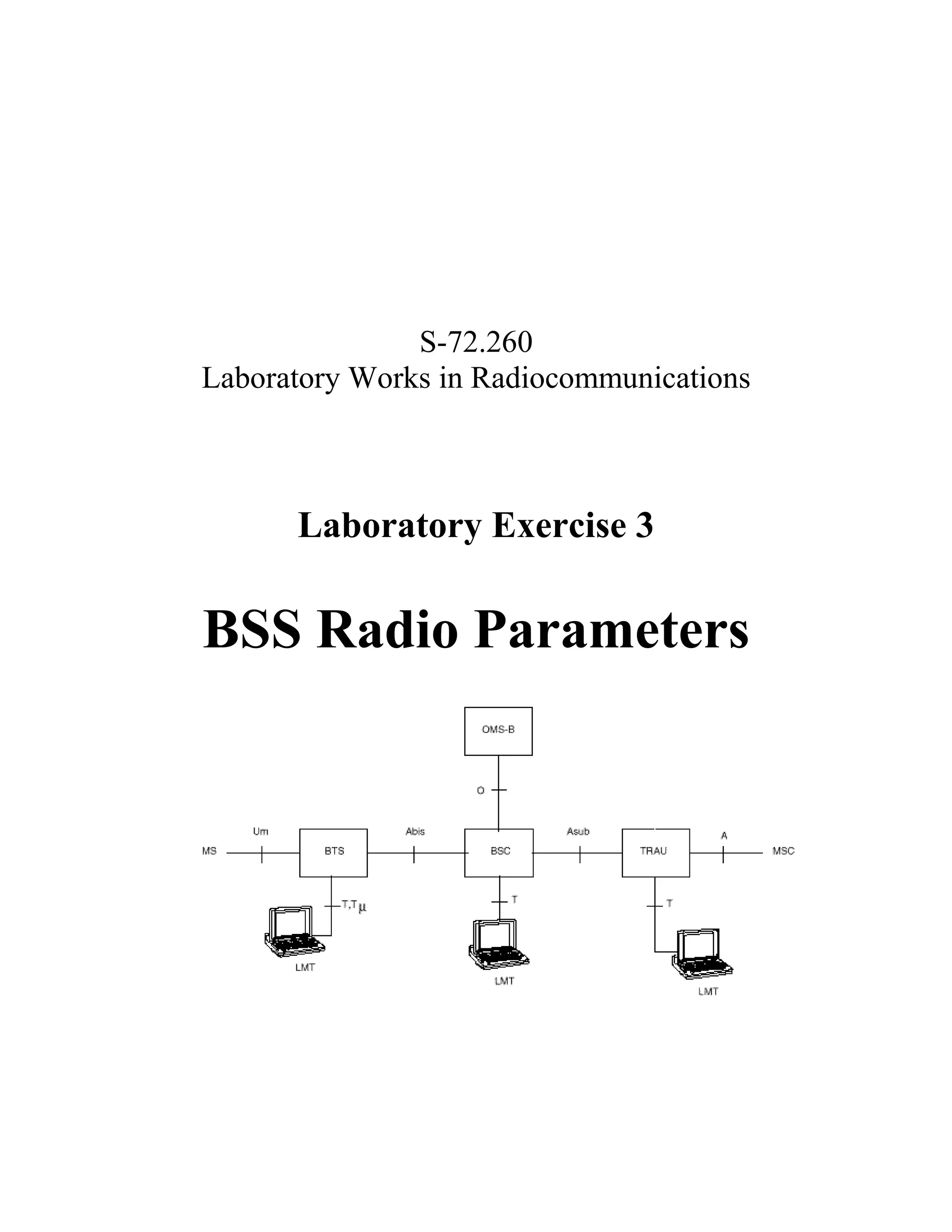 This document provides an overview of radio parameters and channel structures in GSM networks, describing topics such as physical and logical channels, cell selection and reselection, handover, and power control that will be investigated in an upcoming laboratory exercise on optimizing BSS radio parameters to increase network capacity. Some background on GSM fundamentals is assumed, and readers are instructed to prepare well and carefully complete preliminary exercises in order to finish the lab work in a timely manner.