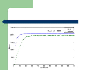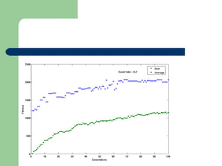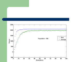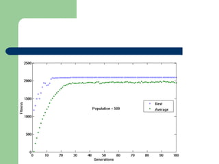 This document presents a parametric study aimed at enhancing the performance of genetic algorithms (GA) using a ranked-based roulette wheel selection method. The study investigates the effects of varying population size, mutation rate, and crossover rate on the GA's effectiveness in function optimization, revealing that optimal parameter settings significantly improve solution quality and algorithm reliability. The findings indicate that specific ranges for population size, crossover rate above 0.8, and mutation rate between 0.0035-0.0065 are crucial for achieving better results in solving complex optimization problems.