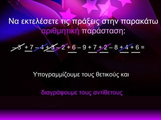 Να κάνετε τιςπράξεις στην παρακάτω αριθμητική παράσταση: Προσοχή στην ιδιότητα Συνέχεια χωρίς θεωρία