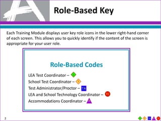 The document provides comprehensive training information for test administrators regarding the PARCC computer-based testing process, including roles, responsibilities, and a clear understanding of testing acronyms, schedules, and security protocols. It outlines essential tasks for preparation, administration, and post-testing, including guidelines for accommodations and troubleshooting during testing. Additional resources for support and training are also detailed, ensuring test administrators are well-prepared for effective test administration.