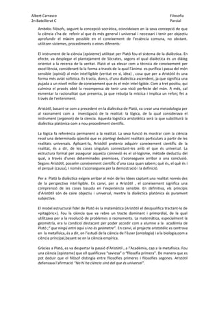1. Compara la concepció sobre la ciència en Plató i Aristòtil.