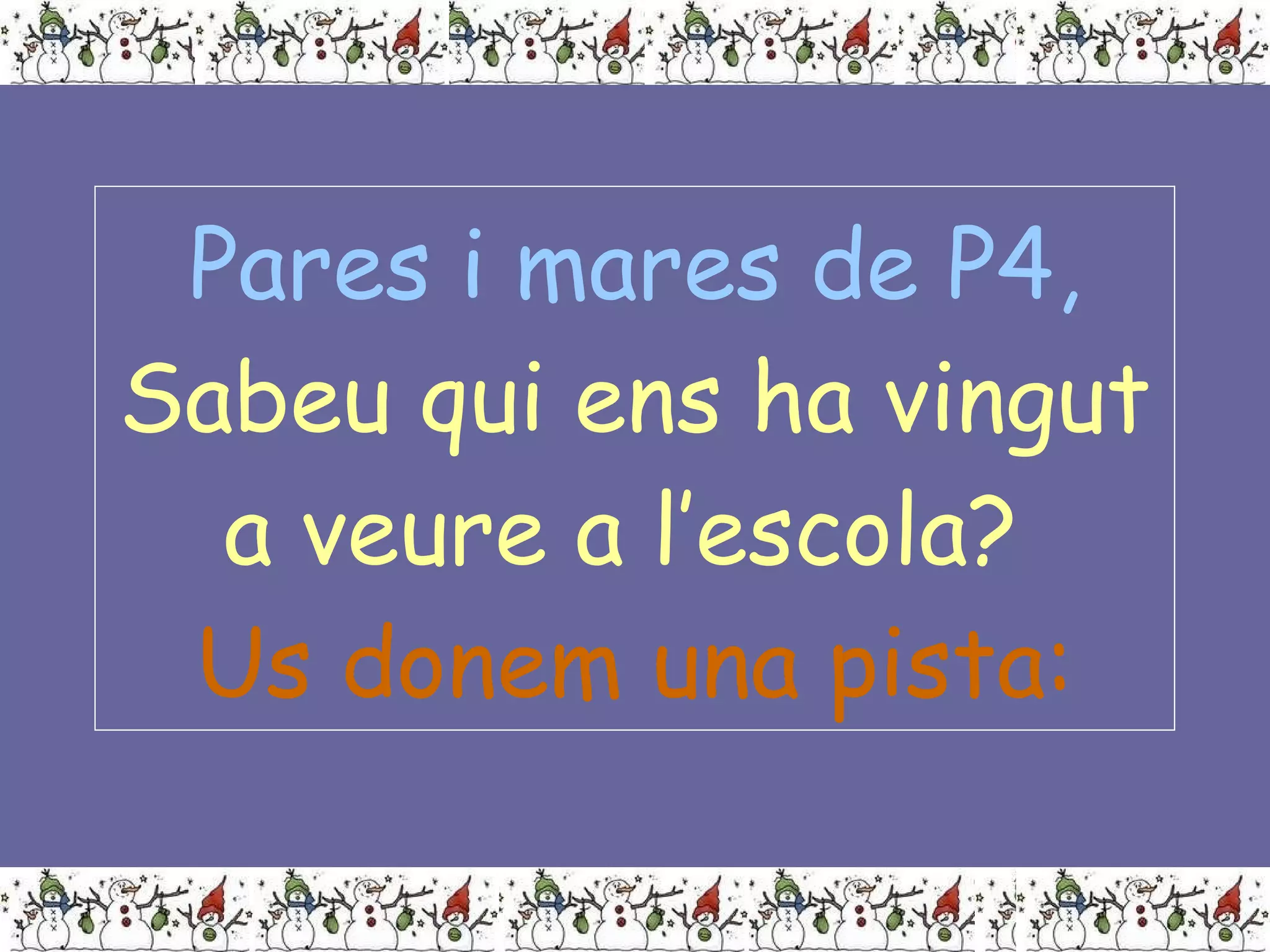 Pares i maresde P4, Sabeu qui ens ha vingut a veure a l’escola? Us donem una pista: - 2.