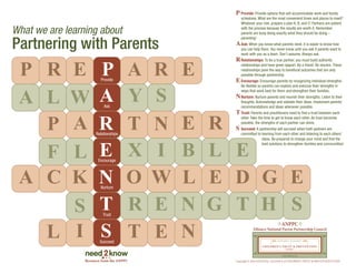 The document provides guidance on partnering with parents through the acronym PARENTS: