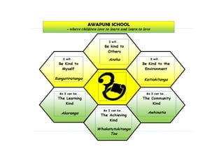 This document provides information about the Middle Syndicate teachers and important things to know for the year at Awapuni School. It lists the 6 classroom teachers and syndicate leader for the Middle Syndicate in 2013. It emphasizes creating safe and caring learning environments where children grow in confidence and independence. It notes important details like library visits, swimming, home learning expectations, and encouraging independence. It values the partnership between home and school to benefit the children and asks parents to contact teachers if any problems or concerns arise.