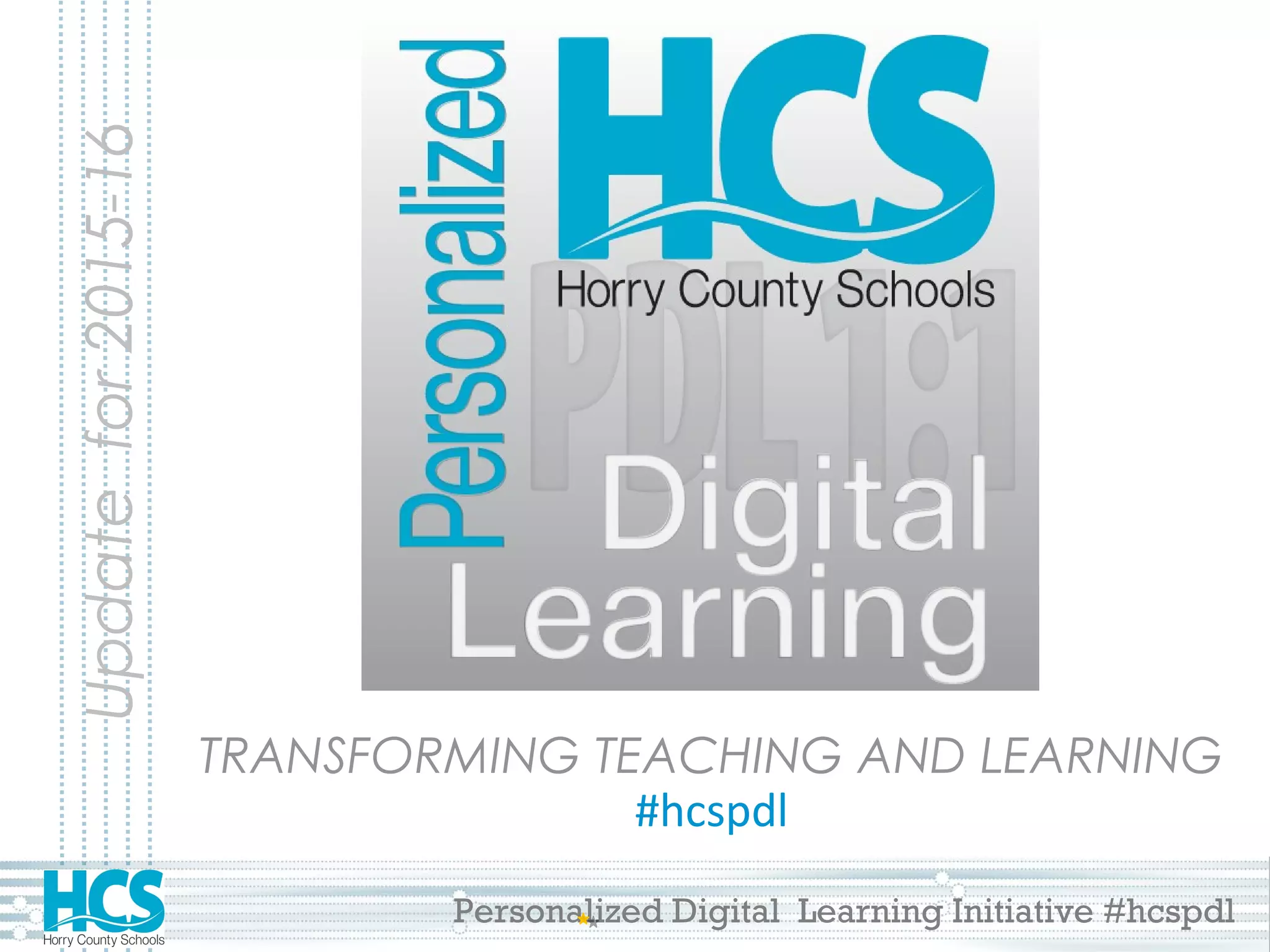 The Horry County Schools Personalized Digital Learning initiative aims to transform teaching and learning by providing personal computing devices to students in grades 3-12 over four years. The initiative envisions immersing students in rich digital learning experiences to develop skills like critical thinking, communication, and creativity that prepare them for college and careers. Students in grades 5-8 will receive iPads while grades 9-12 will receive Dell Venue tablets. A $25 technology fee helps cover accidental damage costs and allows high school students to take devices home. Strict rules govern appropriate device and internet use both at school and home to ensure student safety online and responsible use of technology.