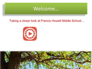 This document provides information for parents about Francis Howell Middle School. It summarizes the school's mission, staff, academic performance, programs, and upcoming events. Francis Howell Middle School serves 284 6th grade students and has a mission to promote critical thinking, academic achievement, and positive character development. The school performs well academically and has implemented programs to build community and character among students. Upcoming events include 5th grade visits, a summer survival series for parents, and a student transition day.