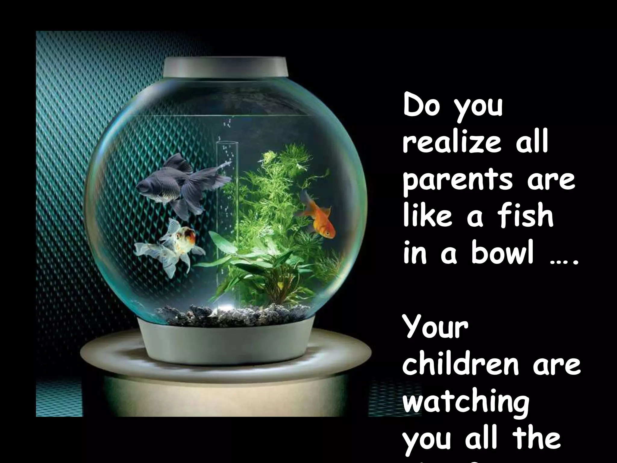 Parents are role models for their children and greatly influence their character development. Children learn more from observing their parents' behaviors than from what they are explicitly told. It is important for parents to practice what they preach by controlling their own tempers, being honest, respecting others, and giving their full attention to their children rather than rationalizing mistakes or being distracted by other tasks when children seek their guidance. Letting children develop at their own pace while maintaining their trust and confidence in their parents allows them to feel secure in themselves.