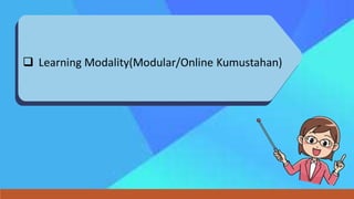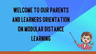The document summarizes the agenda for a parents' orientation on modular distance learning at Bamban Central Elementary School on September 14, 2021. The agenda included discussing the opening of classes, the official school social media pages and website, learning modalities, distribution and retrieval of learning materials, mental health support, election of parent-teacher association officers, and accepting donations. It also listed important reminders for students to follow safety and health protocols when picking up and returning modules, such as wearing face masks and shields, practicing social distancing, and signing forms for accountability.